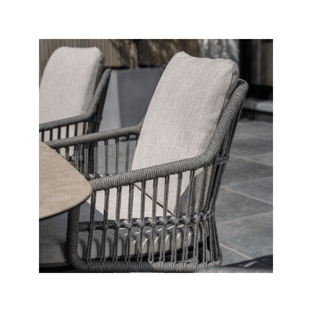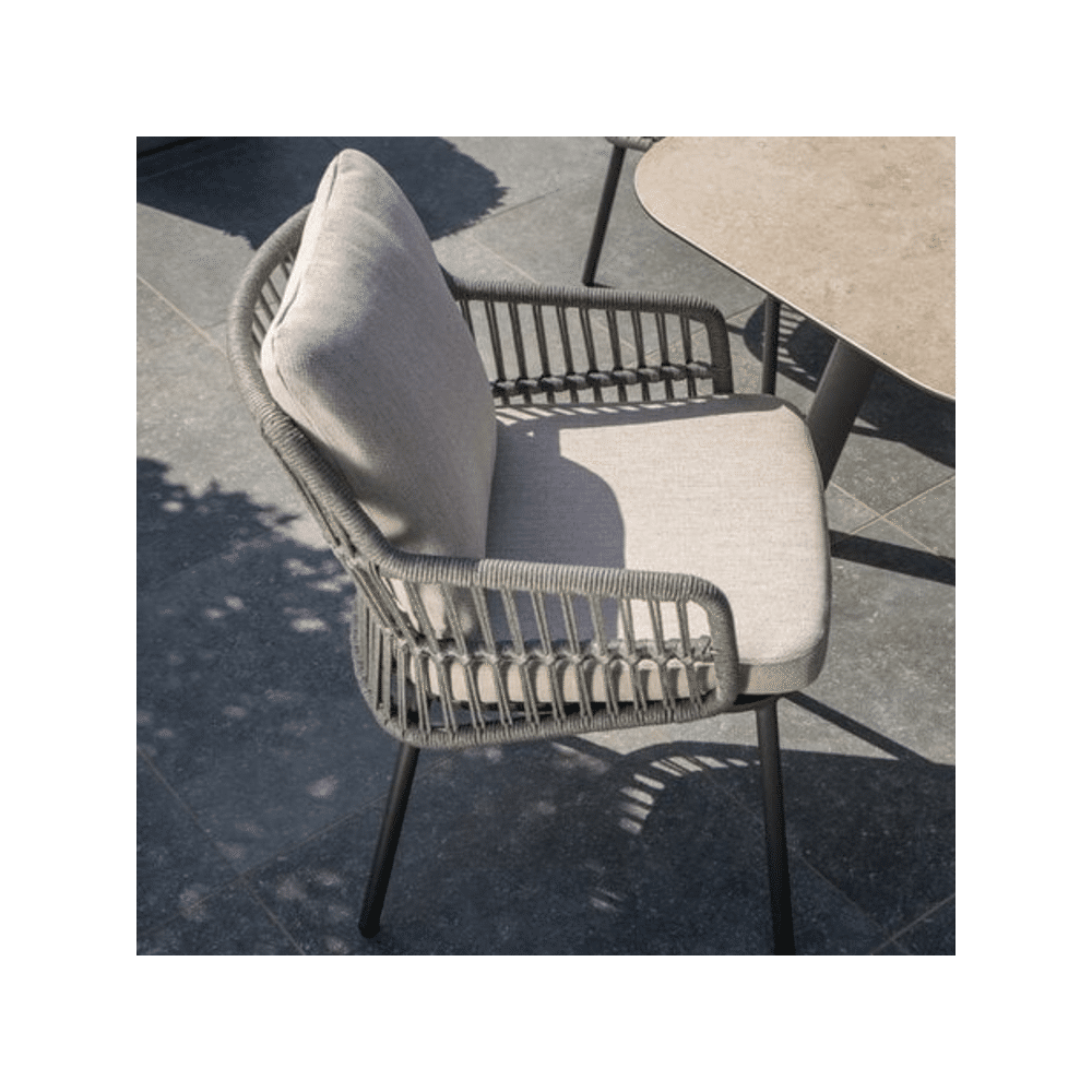Deze Alicante stoel is duurzaam en weerbestendig, ideaal voor elk seizoen. De ergonomische vorm en zachte kussens zorgen voor ultiem comfort bij elke zithouding, of je nu ontspant met een boek of geniet van een diner buiten.