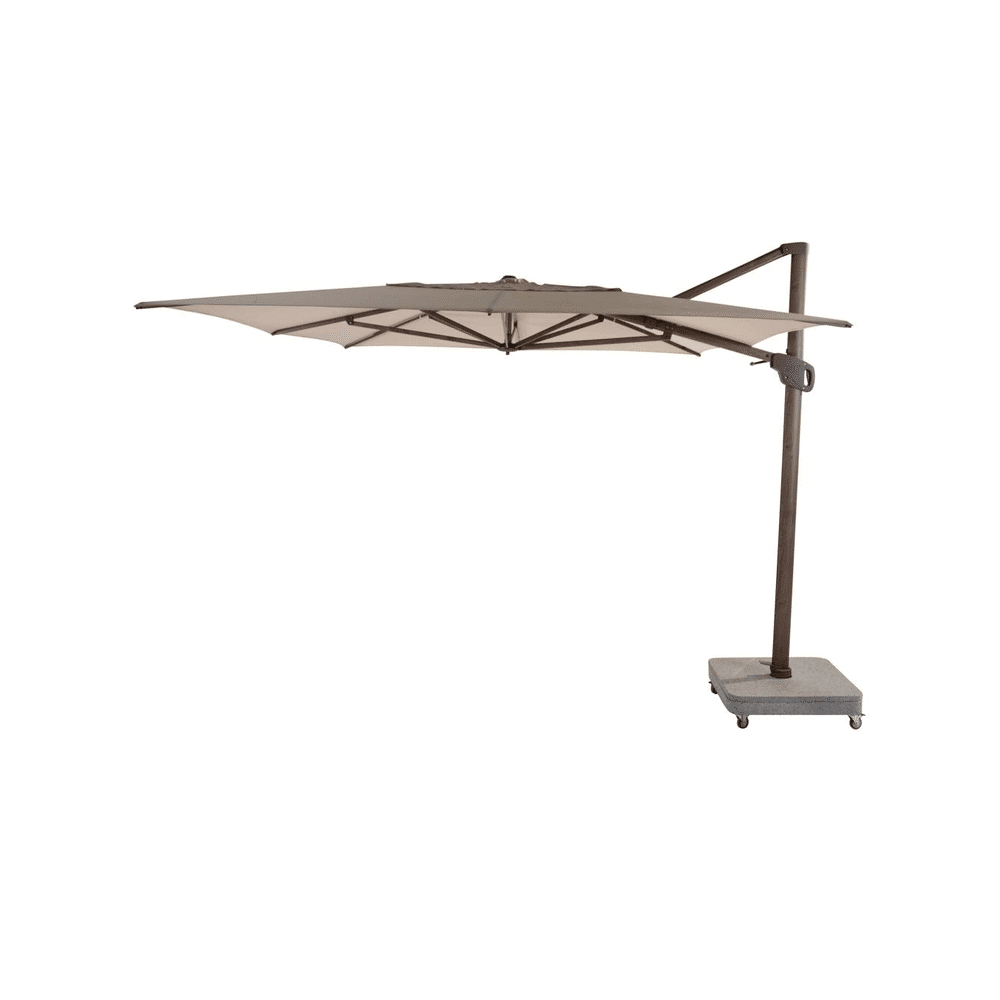 Met een afmeting van 300x400 cm biedt de parasol veel schaduw. De meegeleverde voet van 125 kg met wieltjes zorgt voor stabiliteit en makkelijke verplaatsing. Zo geniet je altijd van optimale bescherming tegen de zon, waar je maar wilt.