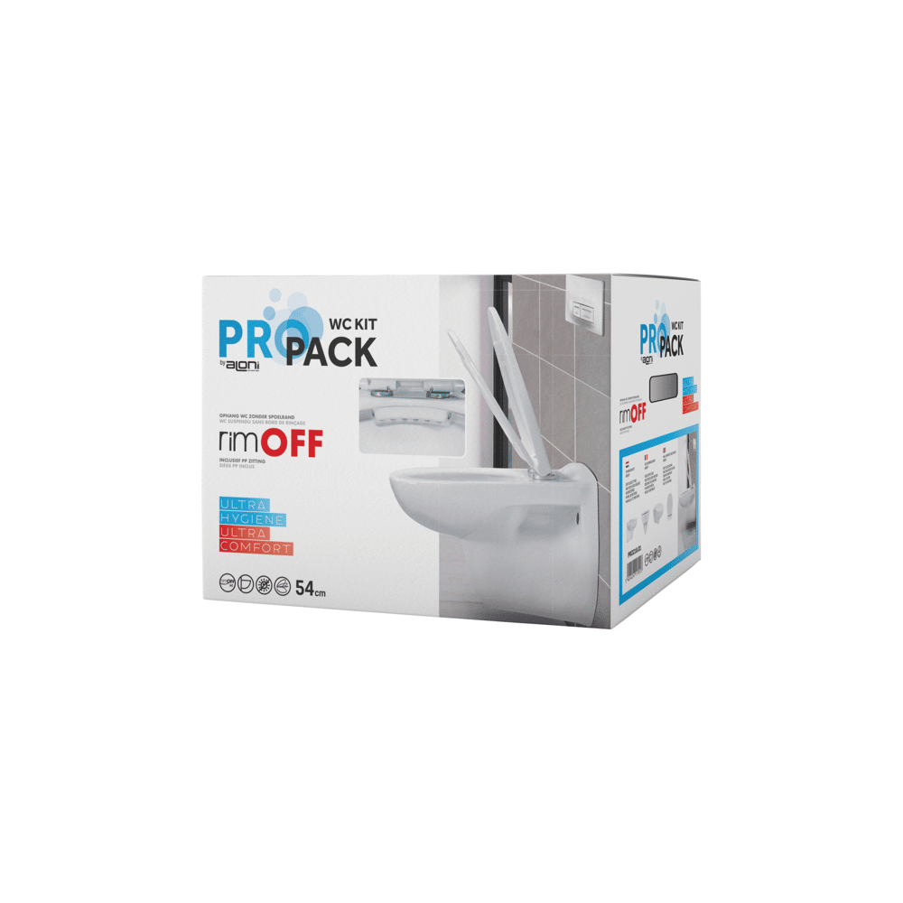 - Product: Aloni Pro Hangtoilet - Randloos - Met Zitting - 35,5x41x54.5cm - Glanzend Wit