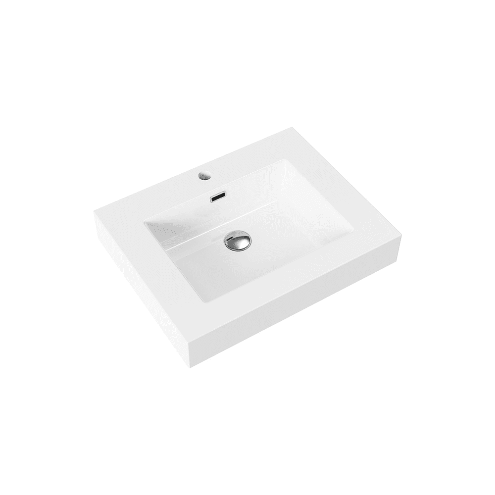 Aloni Wastafel - 1 Wasbak - Met Overloop - 1 Kraangat - Kunstmarmer - 60x10x46 Cm - Mat Wit