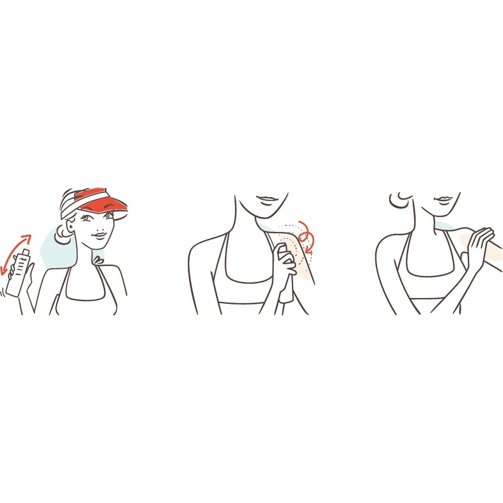 Sproei rijkelijk over de huid voor blootstelling aan de zon. Herhaal regelmatig, vooral na zwemmen of afdrogen.