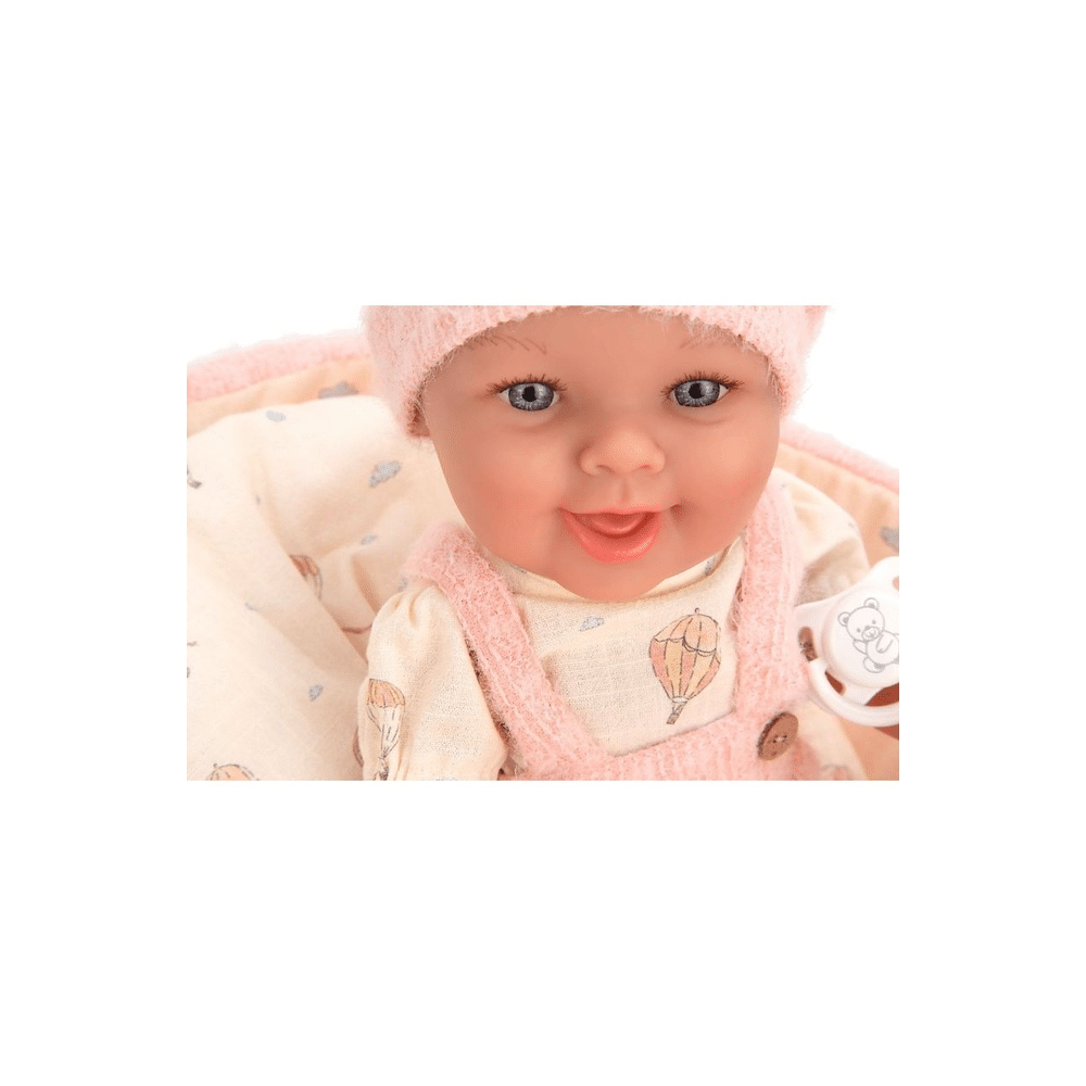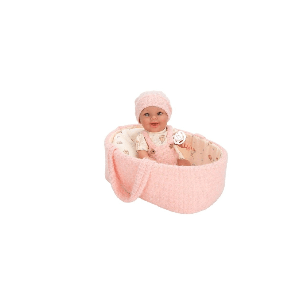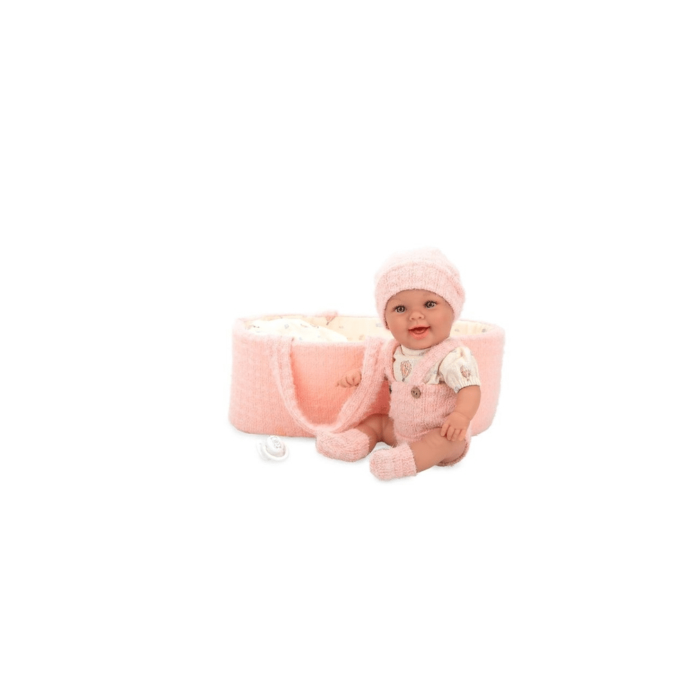 De Arias Pop Gadi in roze met mandje is een duurzame, charmante en compacte pop van 33cm, perfect om mee te spelen, te verzamelen of cadeau te doen.