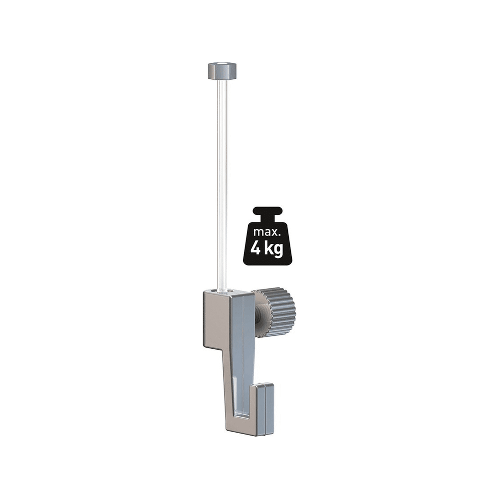 De Mini Haak 4 Kg met 2mm Perlon koord van 150 cm is de ideale oplossing voor het ophangen van lichtere voorwerpen. Of je nu een foto, kunstwerk of klein decoratief item wilt ophangen, deze haak biedt de perfecte balans tussen kracht en discretie. Het dunne, maar stevige perlon koord zorgt voor een strak, onopvallend resultaat.Veelgestelde vragen
