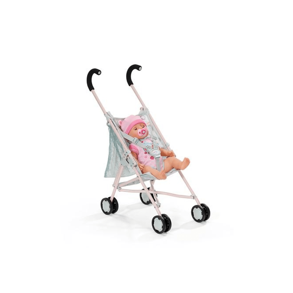 De buggy is lichtgewicht, eenvoudig op te vouwen en gemaakt van duurzaam materiaal. Het zachte zitje en de veiligheidsgordel zorgen dat je pop veilig en comfortabel zit.