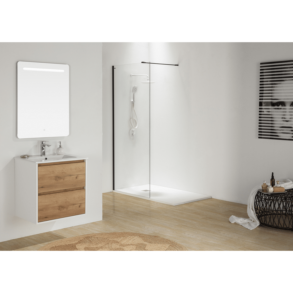 Het Melanie badkamermeubel combineert warme eikenkleur met mat wit voor een stijlvolle en functionele oplossing in middelgrote badkamers. De twee softclose lades bieden voldoende opbergruimte, terwijl de inbegrepen wastafel en spiegel de badkamer direct compleet maken.