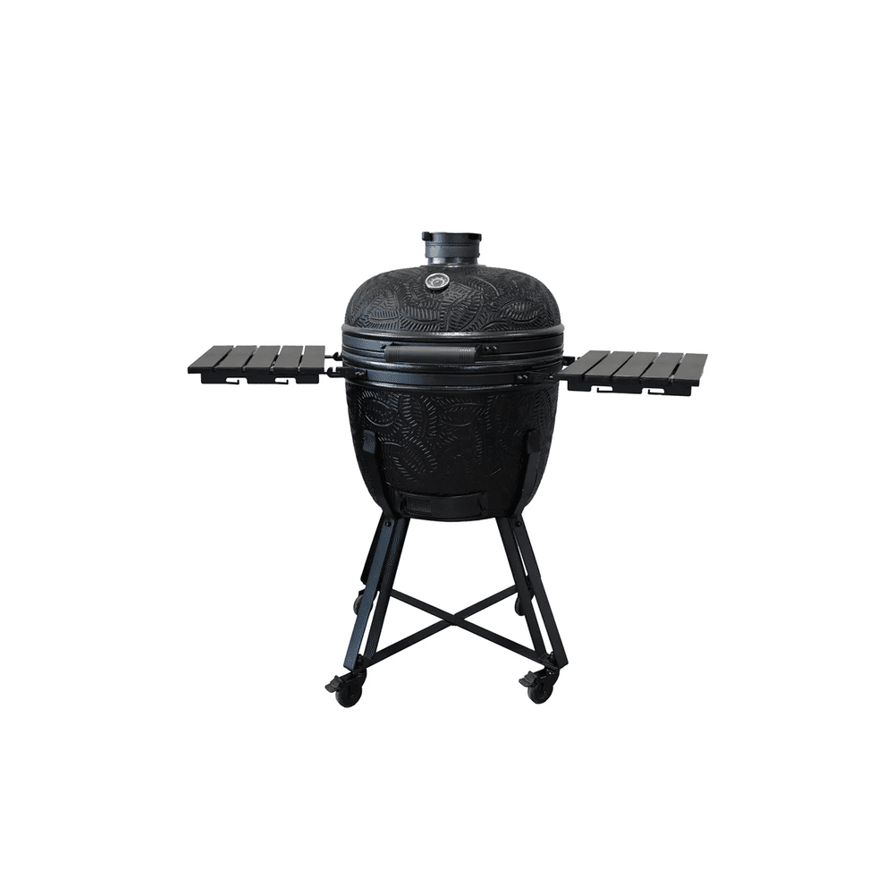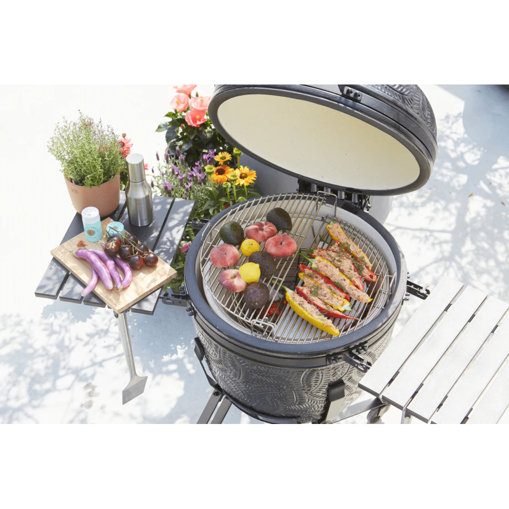 De kamado heeft een extra groot grilloppervlak en een stevig ontwerp. De zwarte matte afwerking geeft een stijlvolle look in je tuin of op je terras.