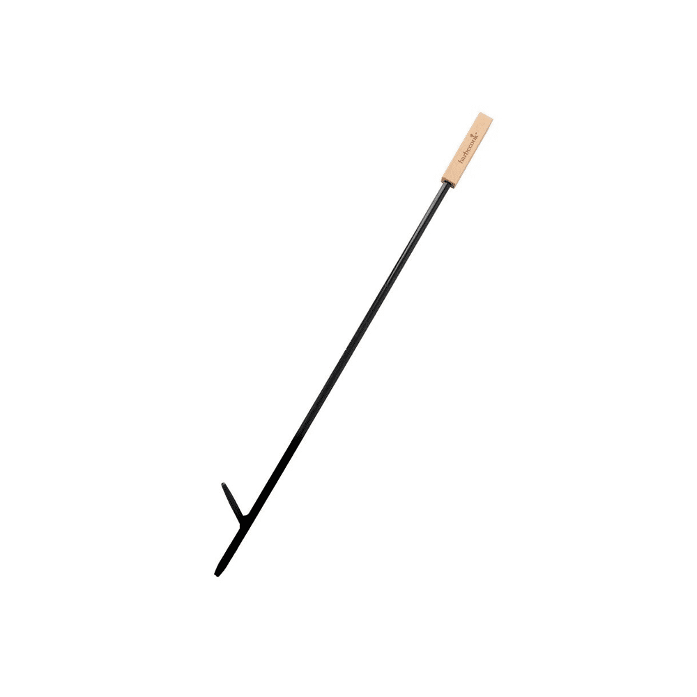 Gebruik de pook om houtskool of briketten te verplaatsen en de luchttoevoer te reguleren via het blaasgat. Het robuuste materiaal is duurzaam en bestand tegen hitte.