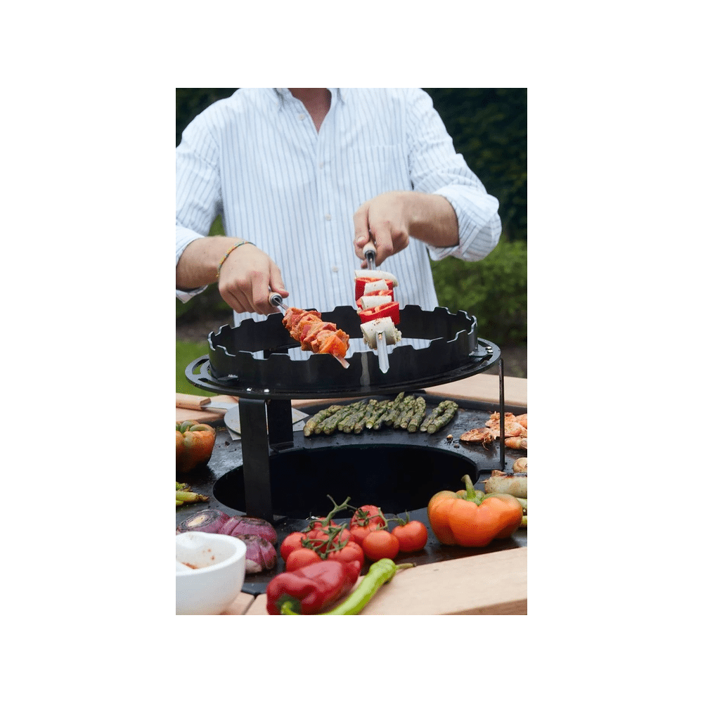 Plaats je ingrediënten gelijkmatig op de skewers en leg ze op je barbecue. Draai regelmatig voor een mooie garing en vermijd verbranden. Na gebruik zijn de skewers eenvoudig schoon te maken en herbruikbaar.