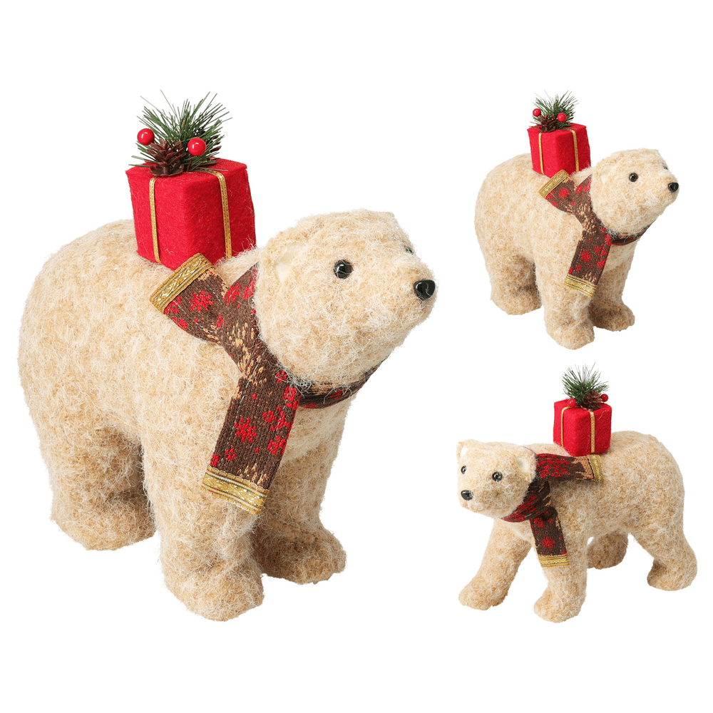 Deze schattige kerstbeer van 27 cm steelt meteen de show in je interieur. Met z’n warme sjaal en vrolijk cadeautje op de rug brengt hij instant kerstsfeer in huis. Verkrijgbaar in 2 verschillende uitvoeringen!Waarom jij deze kerstbeer wil