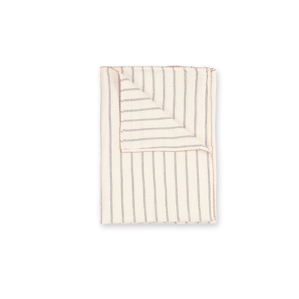 Met deze Bemini deken voor de wieg geef je jouw baby een heerlijk zacht en geborgen gevoel. De luchtige tetra stof voelt comfortabel en ademend aan en de tinny stripe in greige zorgt voor een rustige, moderne uitstraling in elke babykamer.