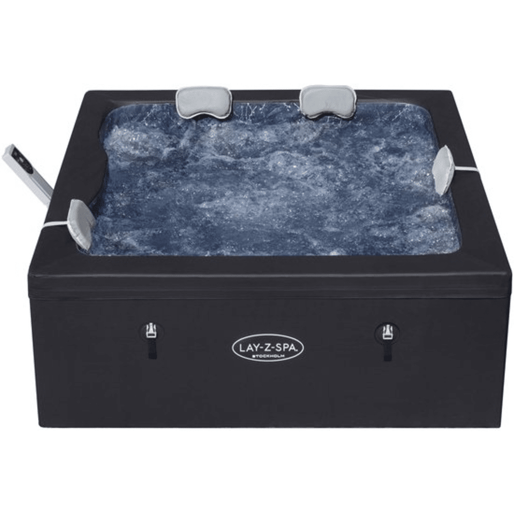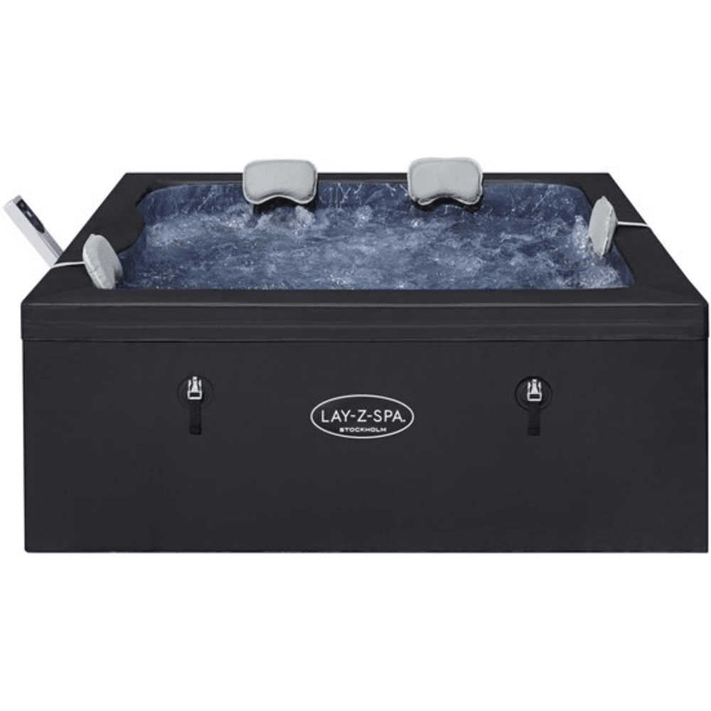 De Bestway Lay-z Spa Jacuzzi Stockholm met filterpomp en Ultrafit Smart Airjet biedt een complete spa-ervaring voor 4 tot 6 personen. Dit ruime model van 164x164cm combineert warme bubbels en comfort, ideaal voor ontspanning met vrienden of familie.