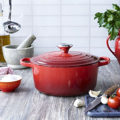Laat de gebruikte pan eerst afkoelen. Sterk afkoelen van het gietijzer door middel van koud water wordt afgeraden, hierdoor kan namelijk de emaille beschadigd worden. Was de pan/pot met warm water en een beetje afwasmiddel (bij pure gietijzeren pannen, zonder emaille laag, mag geen afwasmiddel gebruikt worden). Gebruik nooit schuursponsjes, schuurmiddel of ander bijtende schoonmaakmiddelen. Bij voorkeur gebruik je een zachte spons of afwasborstel. Droog de pan goed af voordat je deze opbergt, zo voorkom je roestplekken. Toch roestplekken? Haal deze dan (per uitzondering) weg met een schuursponsje. Vet daarna de pan in met (natuurlijke) olie (maisolie od) en laat intrekken. Wrijf de geschuurde plek regelmatig in met olie om roest tegen te gaan.