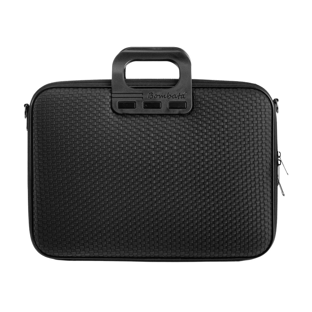 Ga georganiseerd en professioneel op pad met de Bombata Trama business laptoptas in zwart kunstleer met vlechtpatroon. Deze ruime 15 tot 15.6 tot 16 inch laptoptas combineert design en functionaliteit in één sterke werktas. Dankzij de dubbele rits geniet je van extra opbergruimte en optimaal gebruiksgemak.Waarom kies je voor deze Bombata laptoptas.
