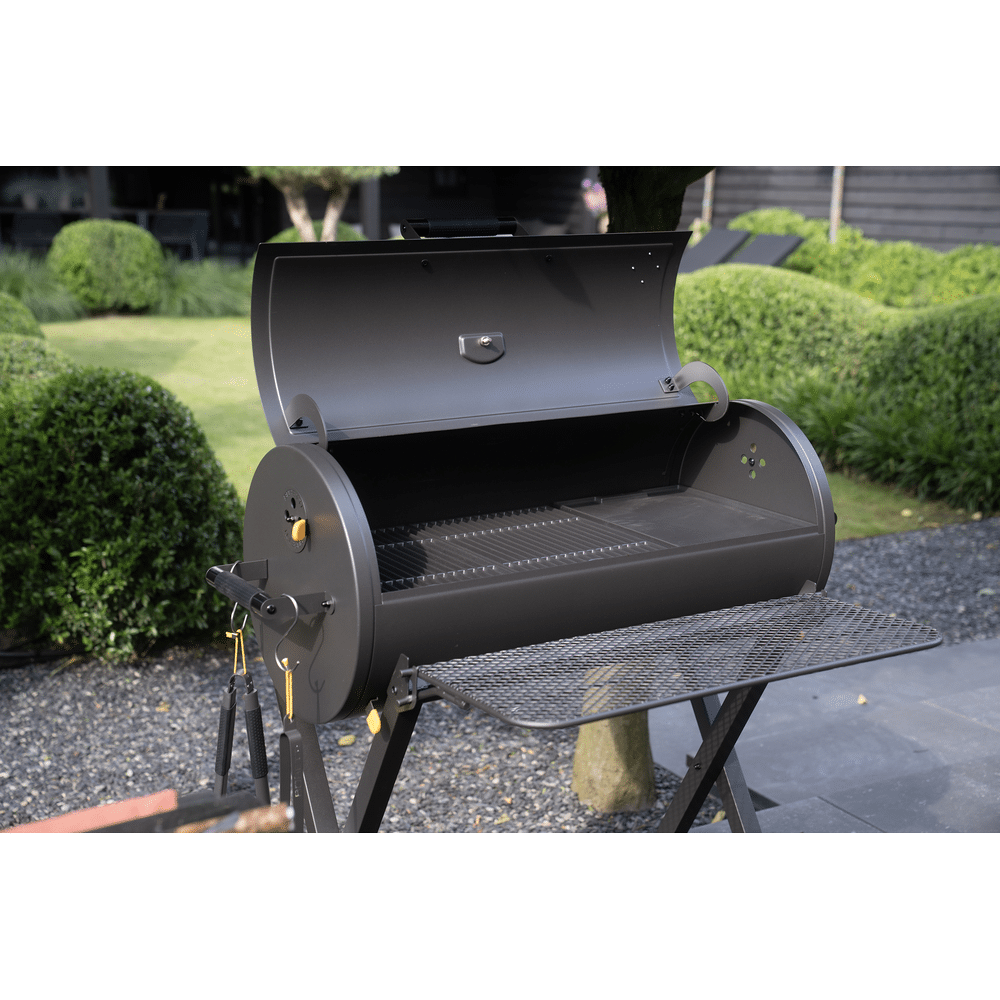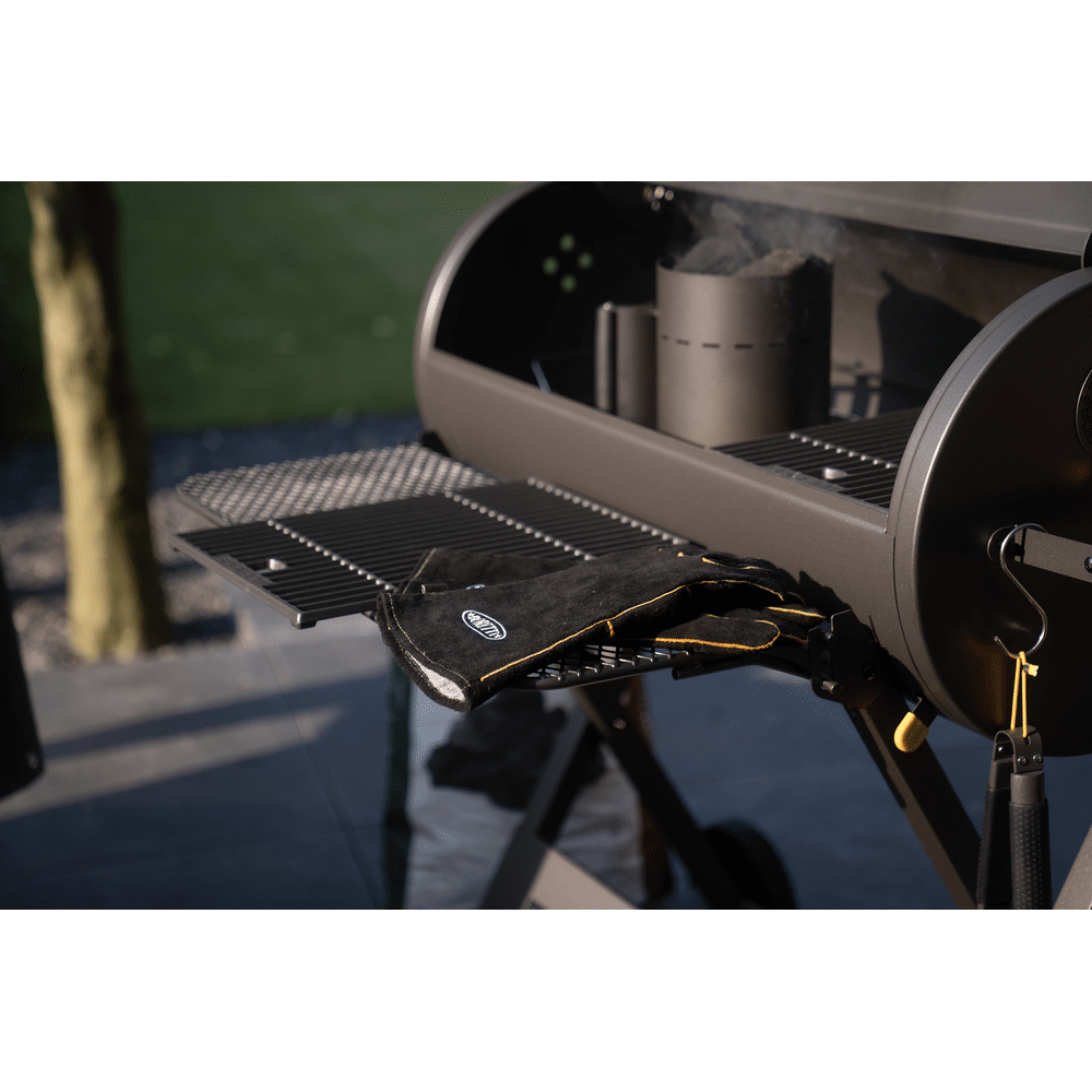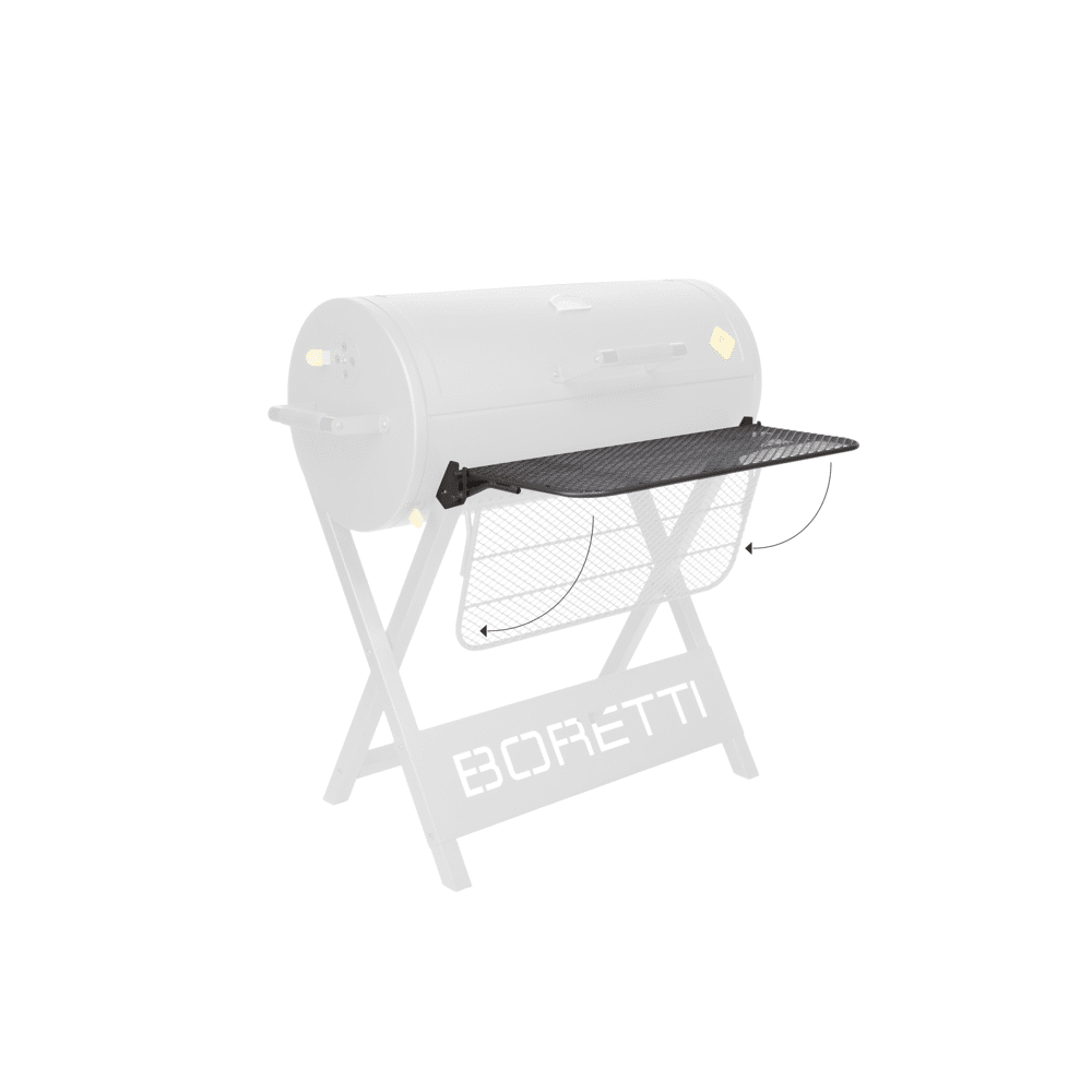 De tafel heeft een handig inklapsysteem waarmee je zelf kiest wanneer je de extra werkruimte inzet. Zo blijft je barbecueplek altijd overzichtelijk en opgeruimd.