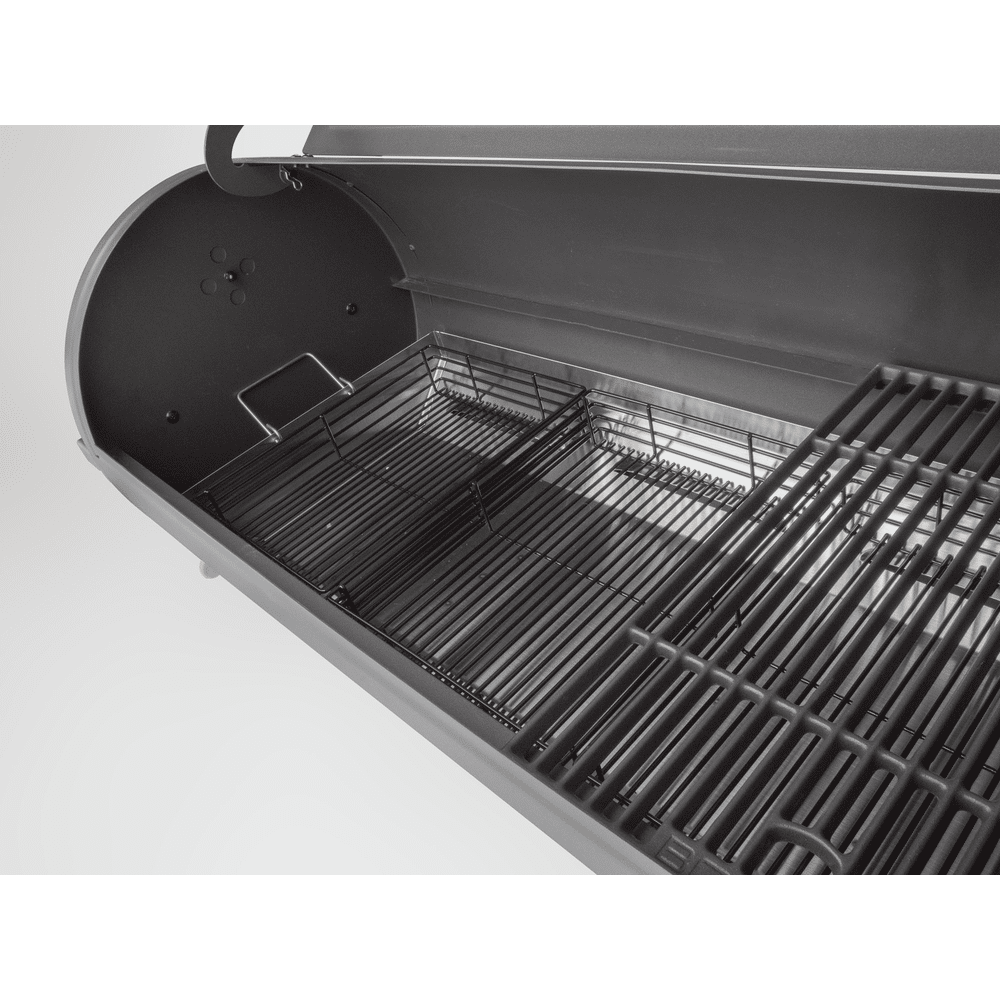 Het royale kookoppervlak van 870 x 410 mm en de drie afzonderlijke kolenmanden zorgen voor optimale warmtecontrole. De uitneembare aslade maakt schoonmaken eenvoudig en de meegeleverde ophangbalken houden accessoires altijd binnen handbereik. Bereid moeiteloos maaltijden voor tot 16 personen.