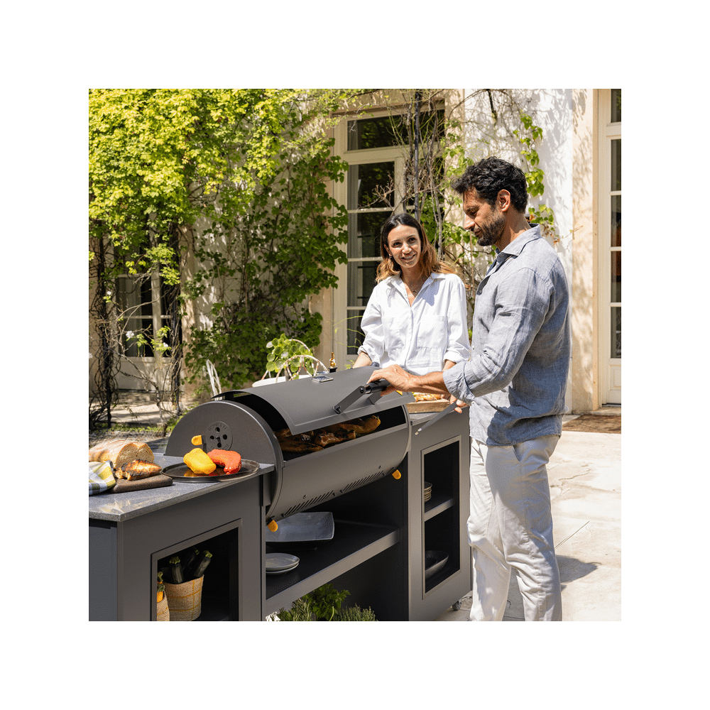 Met de meegeleverde gietijzeren roosters en bakplaat geniet je van eindeloze bereidingsmogelijkheden. Bereid vlees, vis of groenten tegelijk voor meerdere personen en ervaar het plezier van samen koken in de buitenlucht.