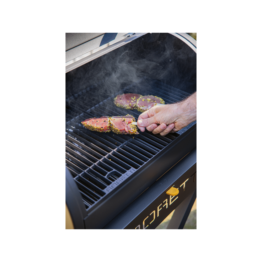 De Fratello 2.0 is gemaakt van robuust materiaal met een antraciete poedercoating en stoere gele details. De uitneembare aslade en hittebestendige handvatten zorgen voor gemakkelijk onderhoud en veilige bediening. De geïntegreerde thermometer helpt je de perfecte grilltemperatuur te behouden.