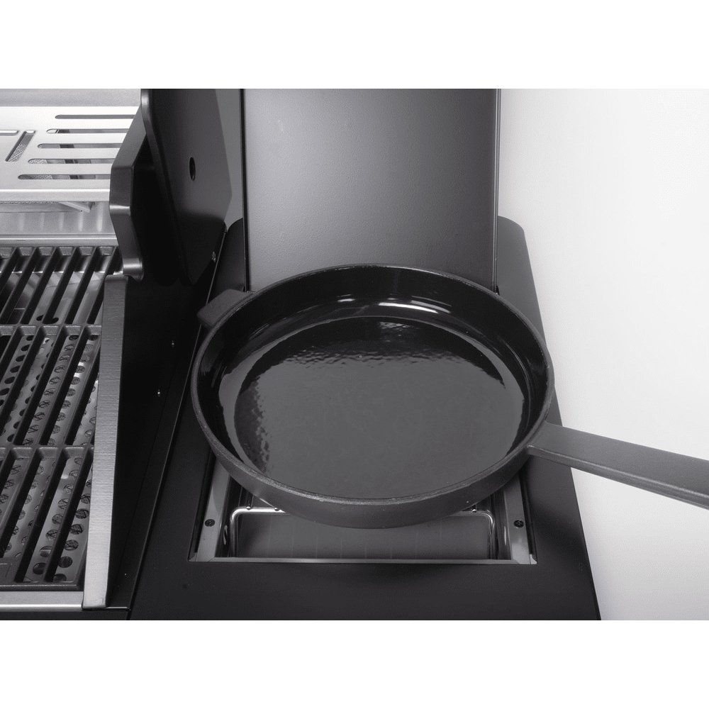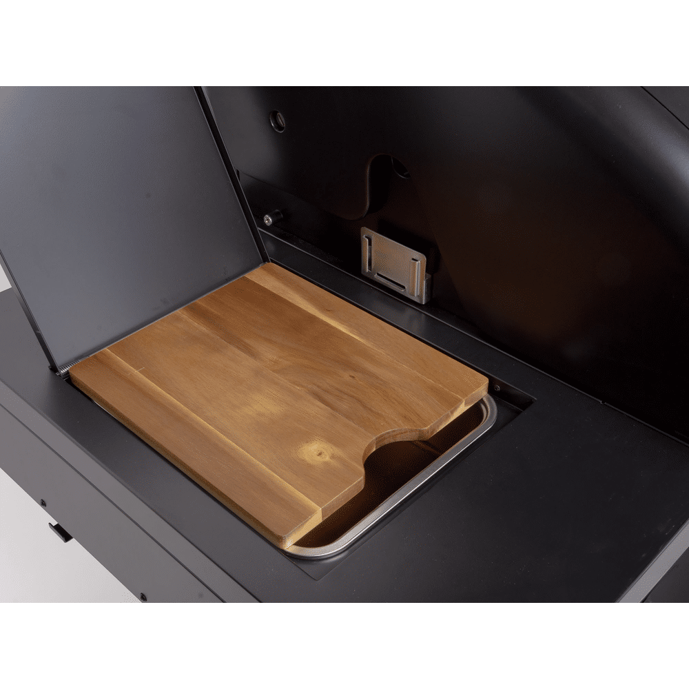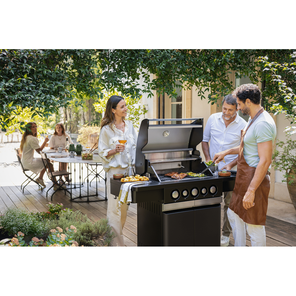 Dankzij het multifunctionele food-prep station met acacia snijplank gebruik je de zijtafel als werkruimte, marinadebox of zelfs drankkoeler. De drie krachtige hoofdbranders, aangevuld met een zijbrander en infrarood achterbrander, bieden maximale flexibiliteit voor grillen, slow cooking en roosteren.