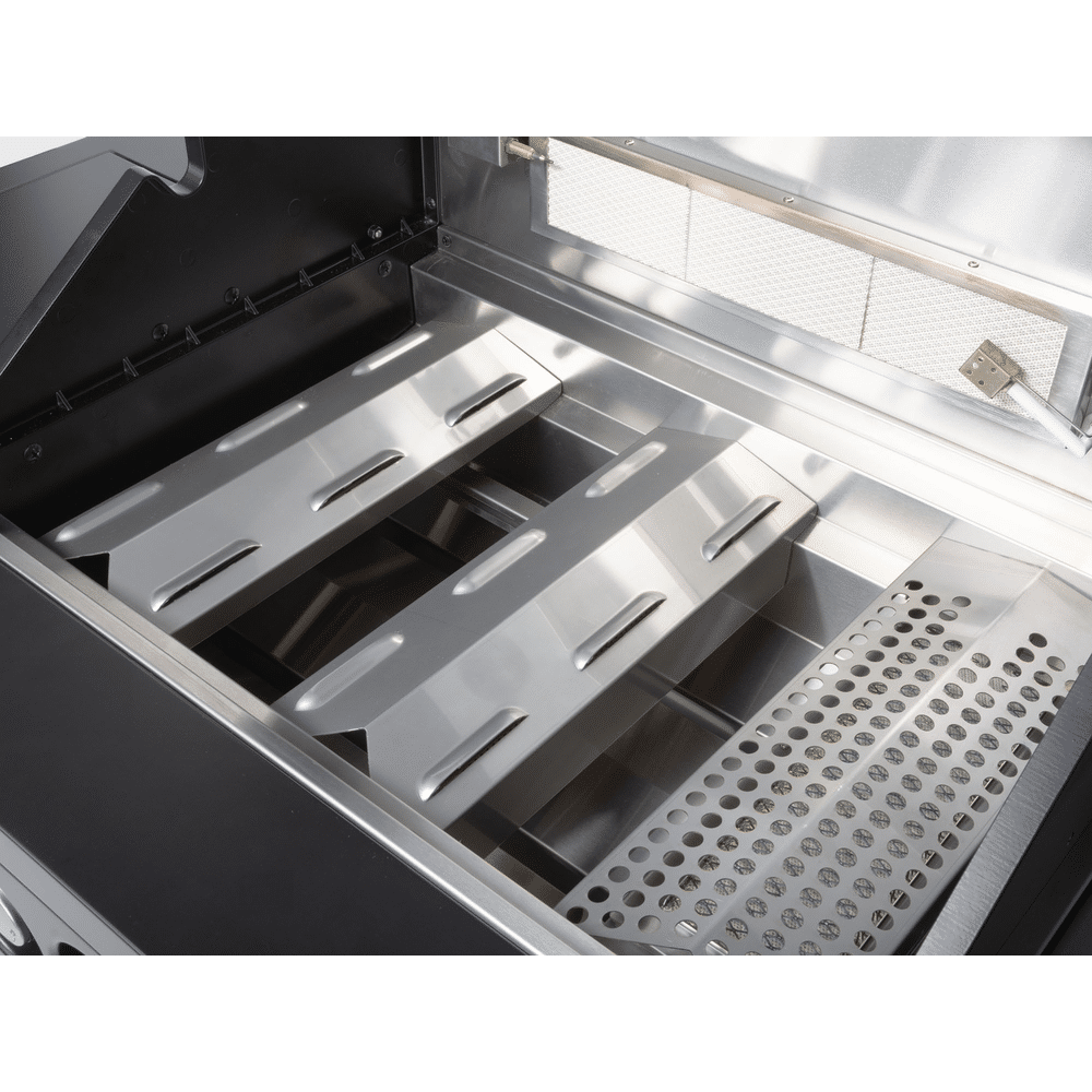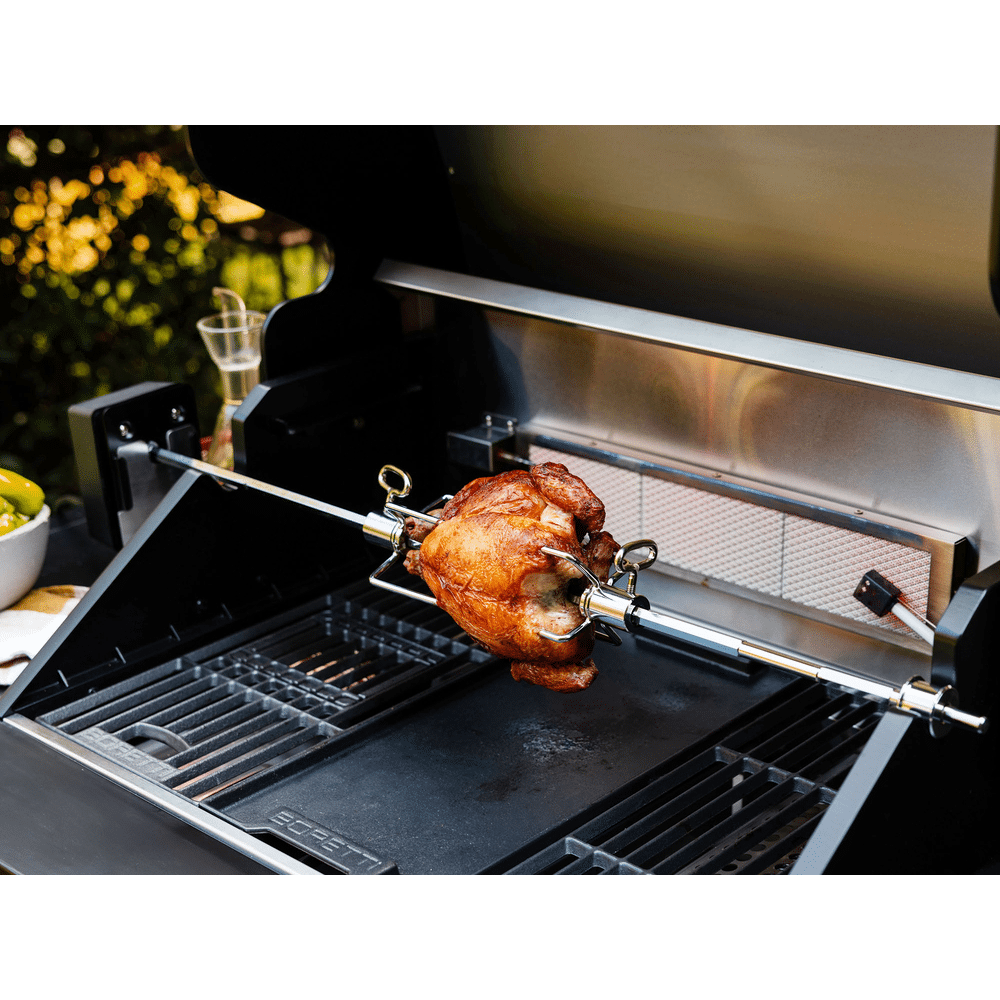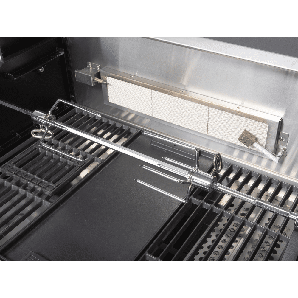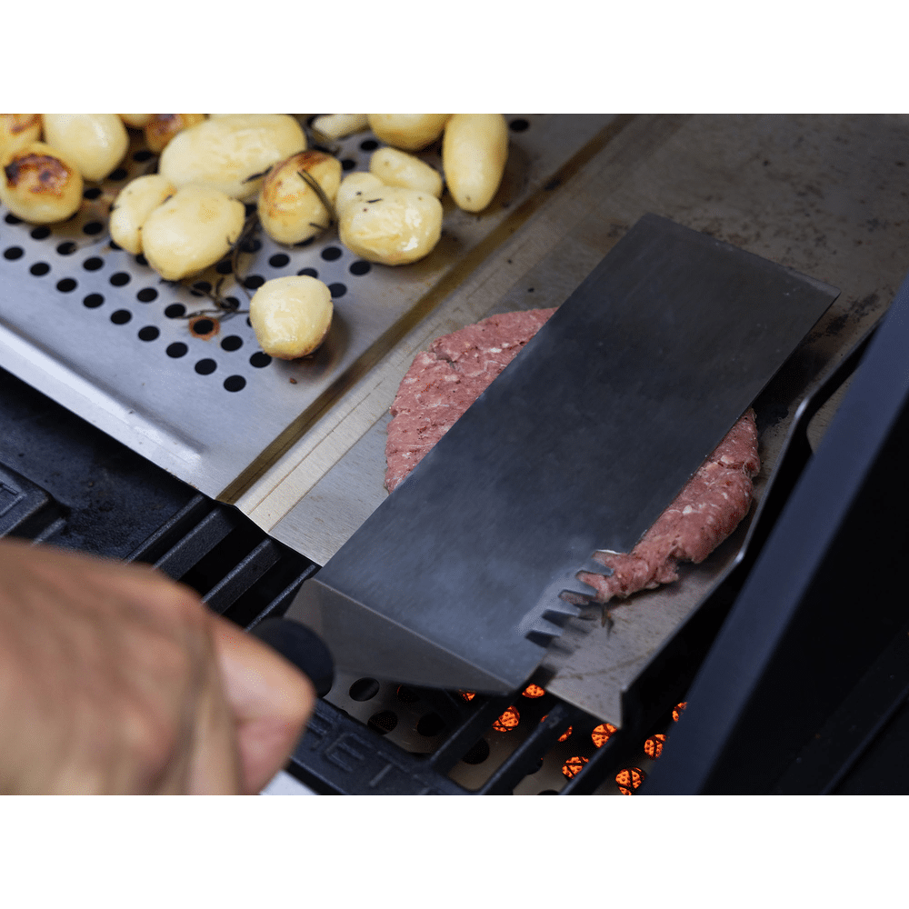 Dankzij het multifunctionele food-prep station met acacia snijplank gebruik je de zijtafel als werkruimte, marinadebox of zelfs drankkoeler. De drie krachtige hoofdbranders, aangevuld met een zijbrander en infrarood achterbrander, bieden maximale flexibiliteit voor grillen, slow cooking en roosteren.