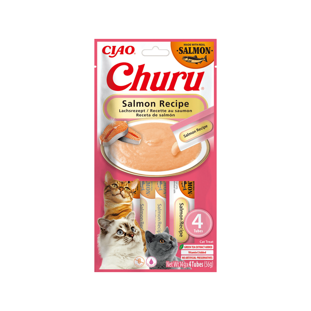 Ciao Churu Puree Kattensnack Salmon 4x14g biedt een gezonde, romige en smakelijke traktatie. Perfect om je kat te verwennen, terwijl je ook bijdraagt aan hydratatie en welzijn.