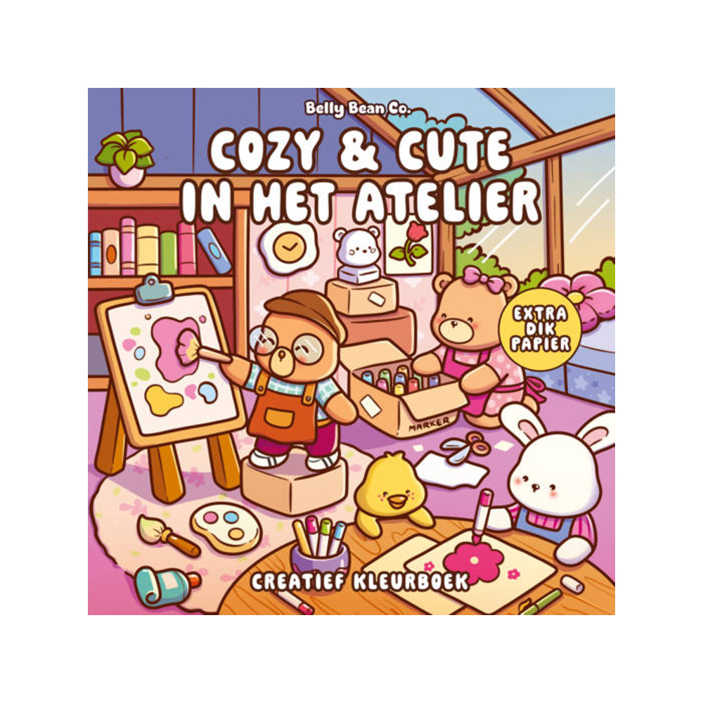 Duik in een warme en creatieve wereld met het Cute & Cozy in het atelier kleurboek van Belly Bean Co.Dit kleurboek zit boordevol gezellige illustraties en nodigt je uit om te vertragen, te kleuren en te genieten.