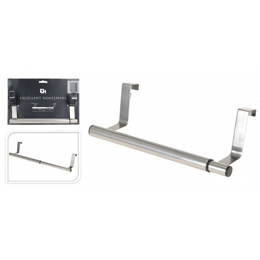 Praktisch, stijlvol en flexibel: deze uitschuifbare deurhanger van 25-40 cm in inox helpt je spullen netjes en binnen handbereik te houden.