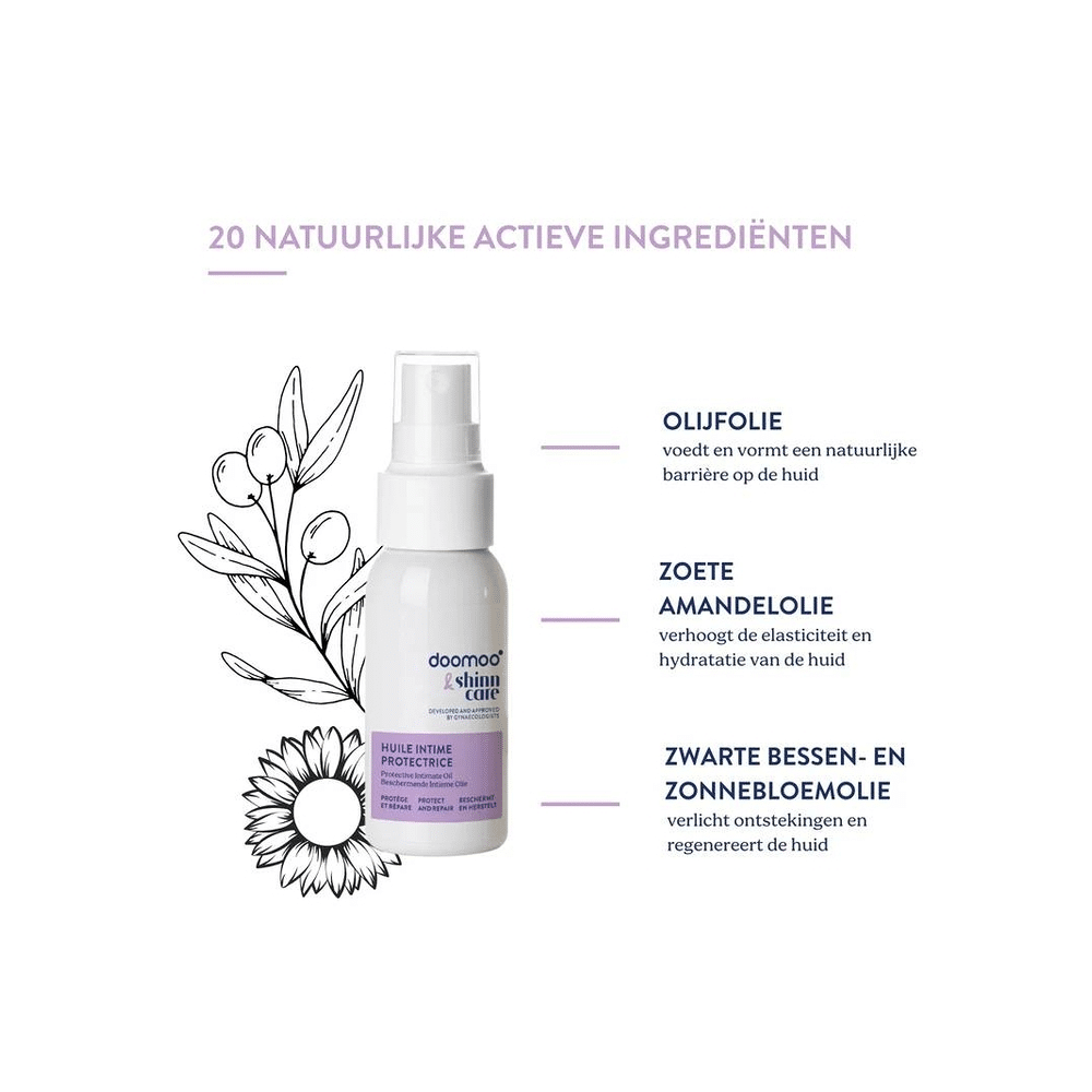 Doomoo Shinncare Beschermende Intieme Olie biedt verzorging, bescherming en comfortVoor een gezond, fris en comfortabel gevoel elke dag