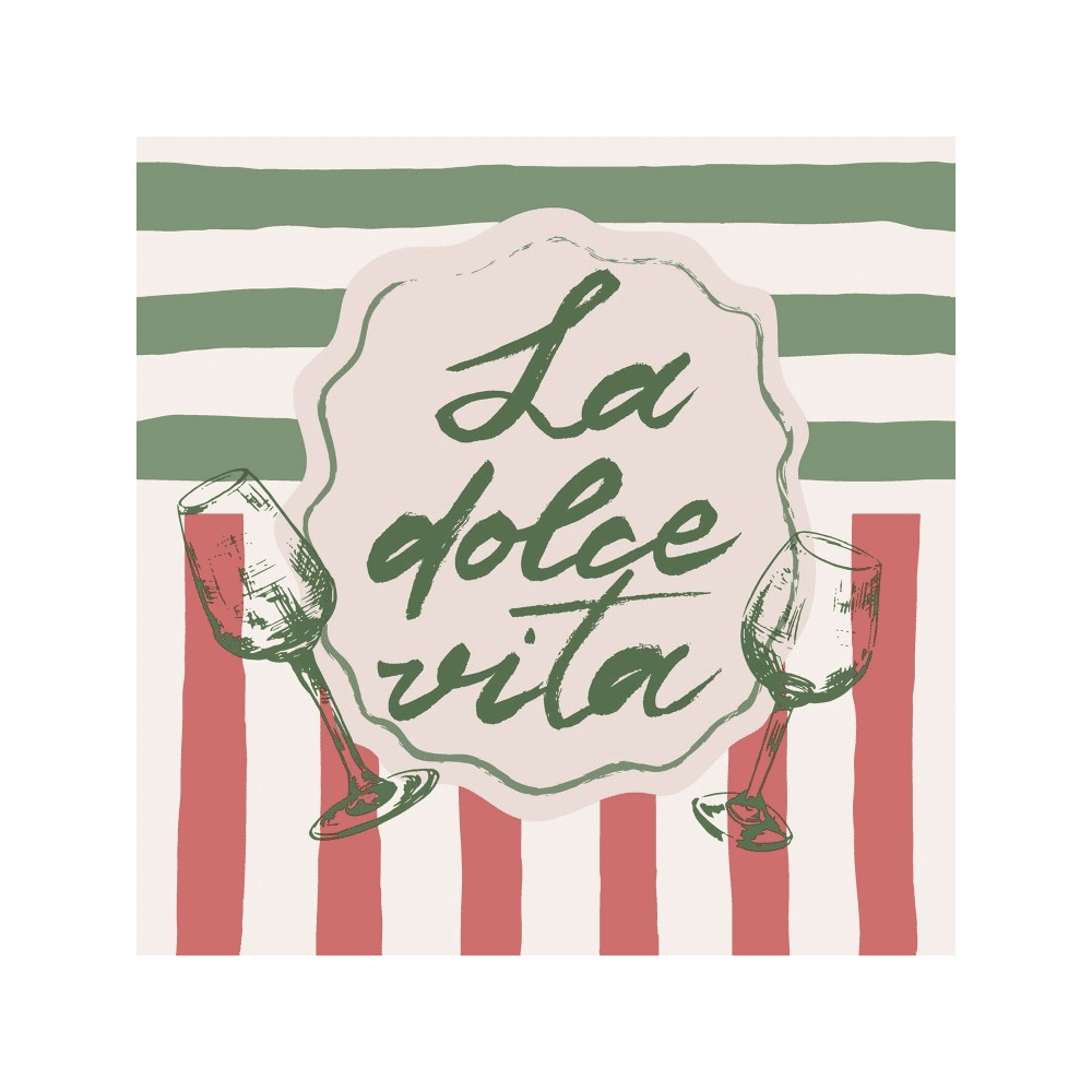 De Duni La Dolce Vita servetten van 33x33 cm geven je tafel een elegante en vrolijke uitstraling. Het stijlvolle ontwerp brengt direct een feestelijke sfeer, perfect voor diners, borrels of gezellige brunches met vrienden en familie.
