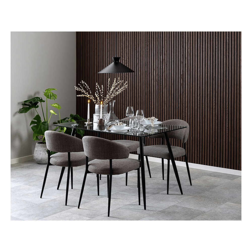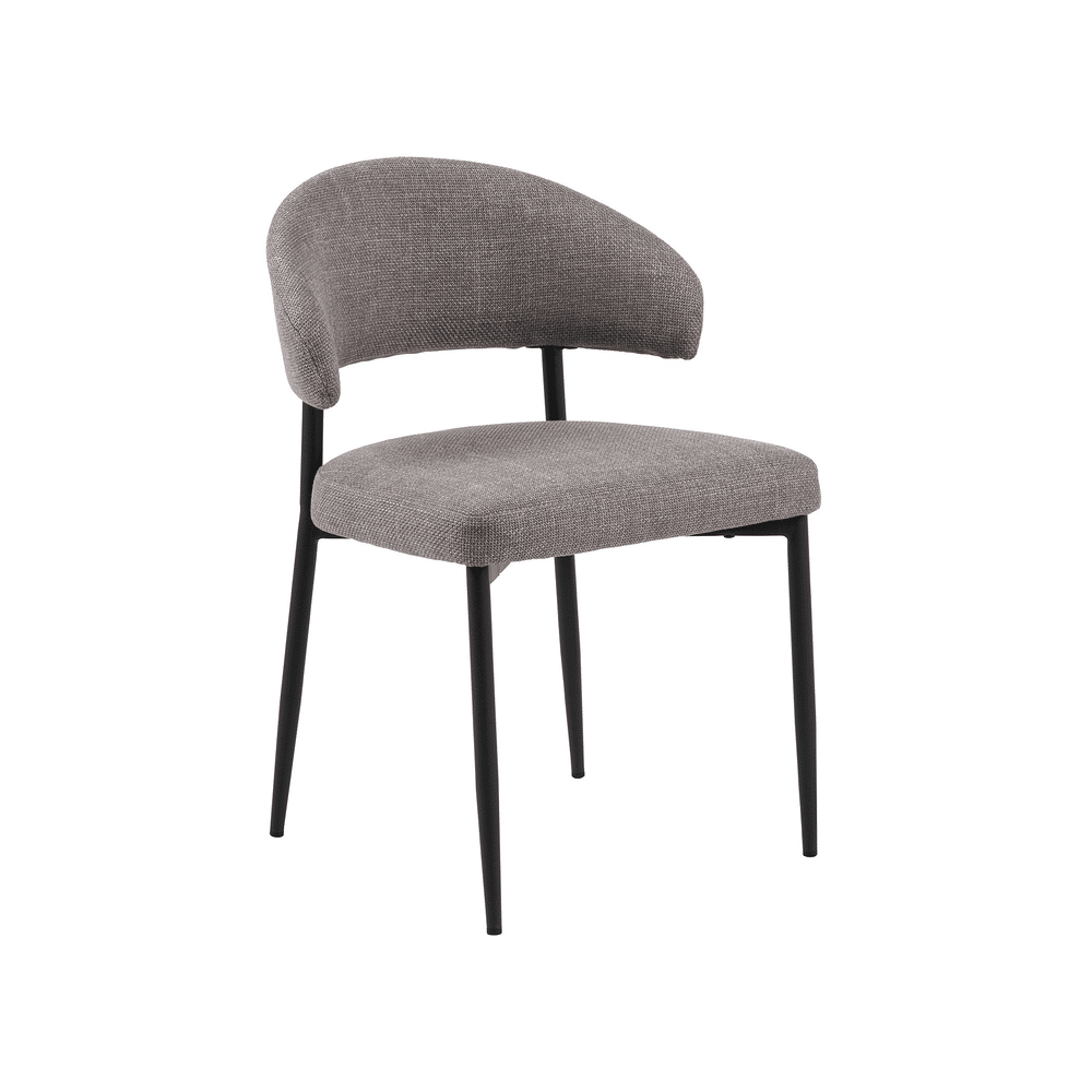De Edina eetkamerstoel brengt comfort en modern design samen in één elegante zitoplossing. De lichtgrijs-bruine stof voelt aangenaam zacht aan, terwijl de zwarte stalen poten zorgen voor een krachtig en eigentijds contrast. Perfect voor lange diners, gezellige koffiemomenten en een interieur dat gezien mag worden.