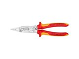 Stripgaten voor kabels: 0,75/1,5/2,5 mm²; krimpinzet voor adereindhulzen: 0,5/2,5 mm²; kabelschaar met precisiesnijvlakken voor koperen en aluminium kabels tot 5 x 2,5 mm²/Ø 15 mm; met pal; met openingsveer; slanke vormgeving voor goede toegankelijkheid; geschroefd scharnier; geïsoleerd met meercomponentengrepen; DIN EN 60 900 en VDE-norm