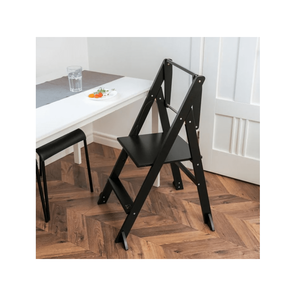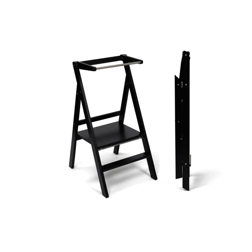 Sterke en stijlvolle Ette Tete Step'n'Fold leertoren in black. Jij geeft je peuter veilig hoogte, zonder gedoe. Ideaal voor koken, poetsen of spelen aan het aanrecht. Compact, stevig en in één beweging op te vouwen.