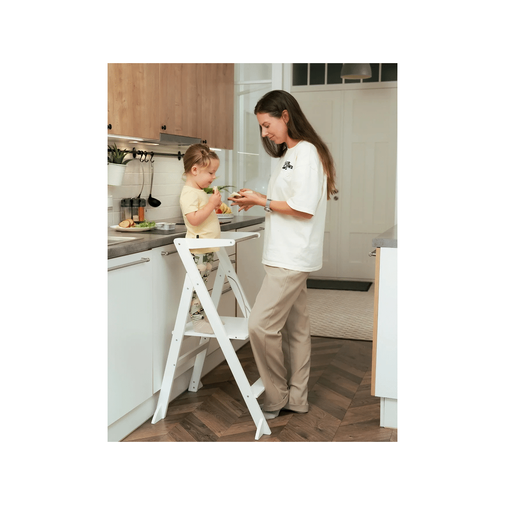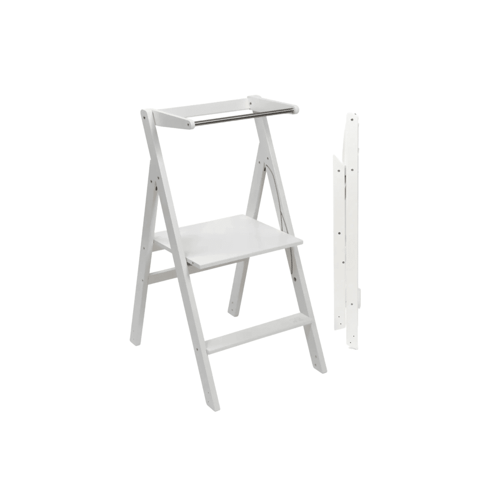 Sterk, veilig en snel plooibaar: met deze witte leertoren help je jouw kleintje zelfstandig mee te doen in de keuken, badkamer of speelruimte. Licht, stevig en superpraktisch voor elke dag.