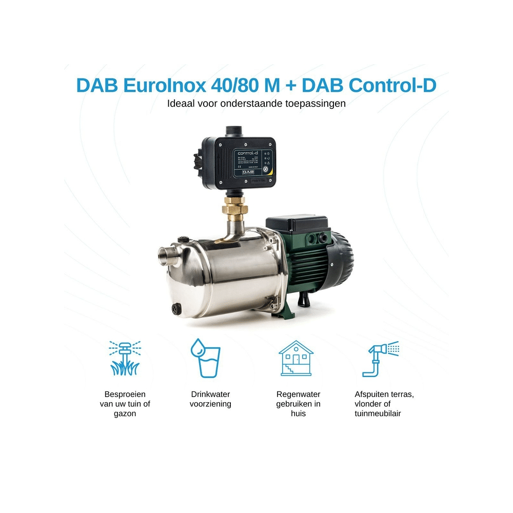 De Euro Inox 40/80 Control-D 1x230V 50Hz IE2 Schuko is betrouwbaar, efficiënt en duurzaam.Een slimme keuze voor veelzijdige waterpomp toepassingen.