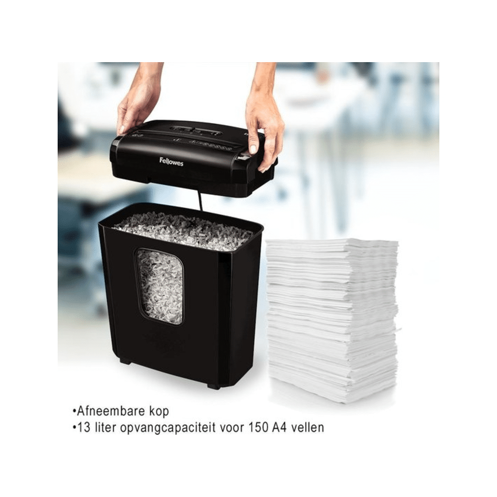 Met de Fellowes Powershred 6M kies je voor slimme veiligheid in een compact jasje. Snel, eenvoudig en perfect om je papierberg veilig te laten verdwijnen.