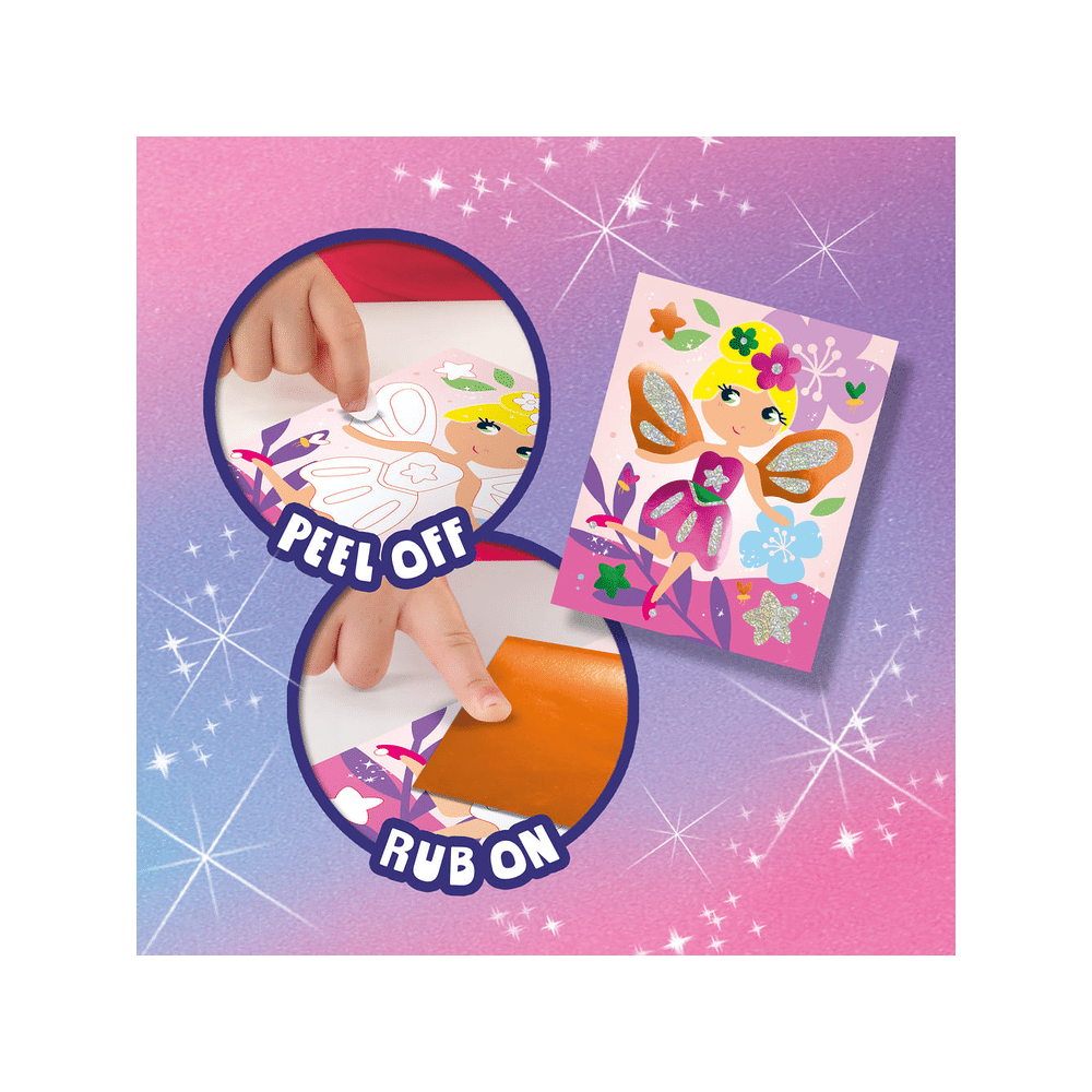 Met deze creatieve knutselset maak je samen met je kind fonkelende sprookjesfiguren. Door eenvoudig folie op de stickerkaarten te wrijven, ontstaan kleurrijke kunstwerkjes waar je meteen trots op bent. Ideaal voor een gezellig knutselmoment.