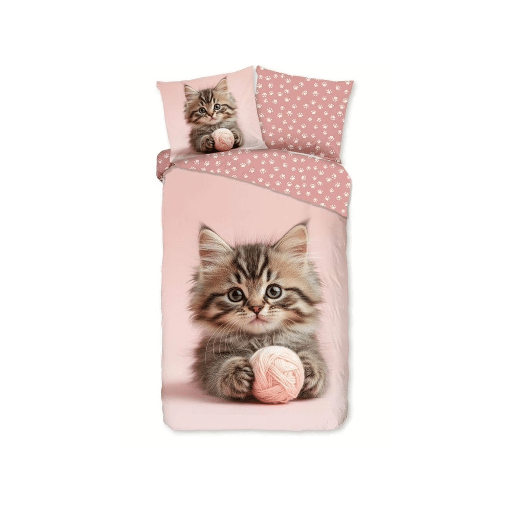 Dierenliefhebber in huis? Dan wordt slapen een feestje met het kinderdekbedovertrek Chat van Good Morning. Roze, zacht én met een lieve kitten die speelt met een bolletje wol. Perfect voor kleine dromers die houden van knusse nachten en katjes!Waarom jij en je kind dit willen