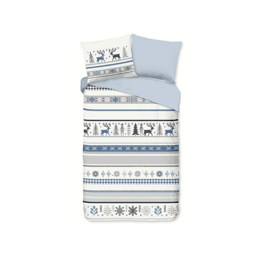 Kruip onder het flanellen dekbedovertrek Aila van Good Morning en zeg vaarwel tegen koude nachten. De winterse print en zachte blauwe kleur brengen meteen sfeer in je slaapkamer. Dit dekbedovertrek voelt niet alleen zalig aan, maar ziet er ook nog eens supergezellig uit.Waarom jij dit dekbedovertrek wil