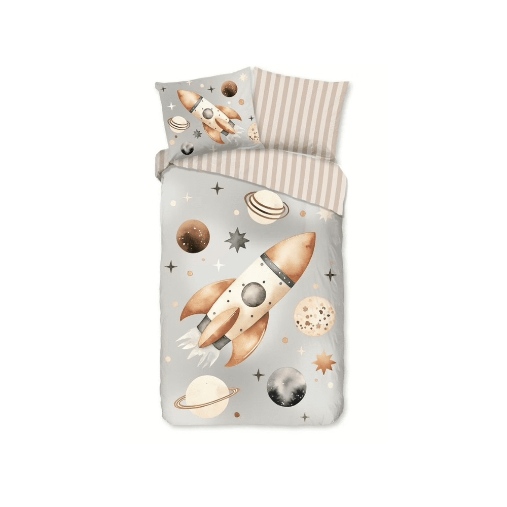 Of het nu zomer of winter is, dit katoenen dekbedovertrek houdt het bed koel of juist lekker warm. Perfect voor kinderen die houden van fantasie en comfort.- Stoere ruimteprint met raket