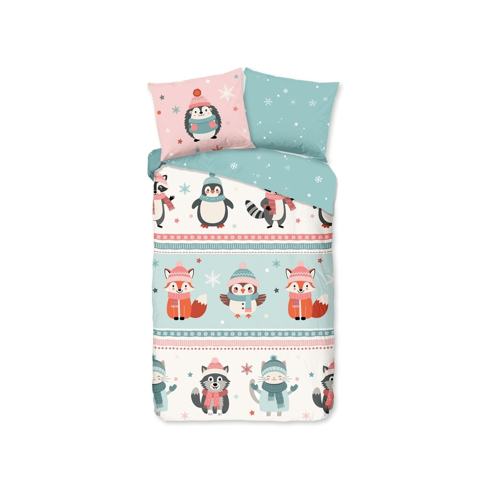 Laat de winter maar komen! Met het flanellen kinderdekbedovertrek Turr van Good Morning slaapt je kleine elke nacht warm en gezellig onder een dekentje vol vrolijke dieren mét sjaals en mutsen. Perfect voor koude nachten, knusse bedtijdverhalen en extra veel slaapcomfort.Warm, zacht én speels