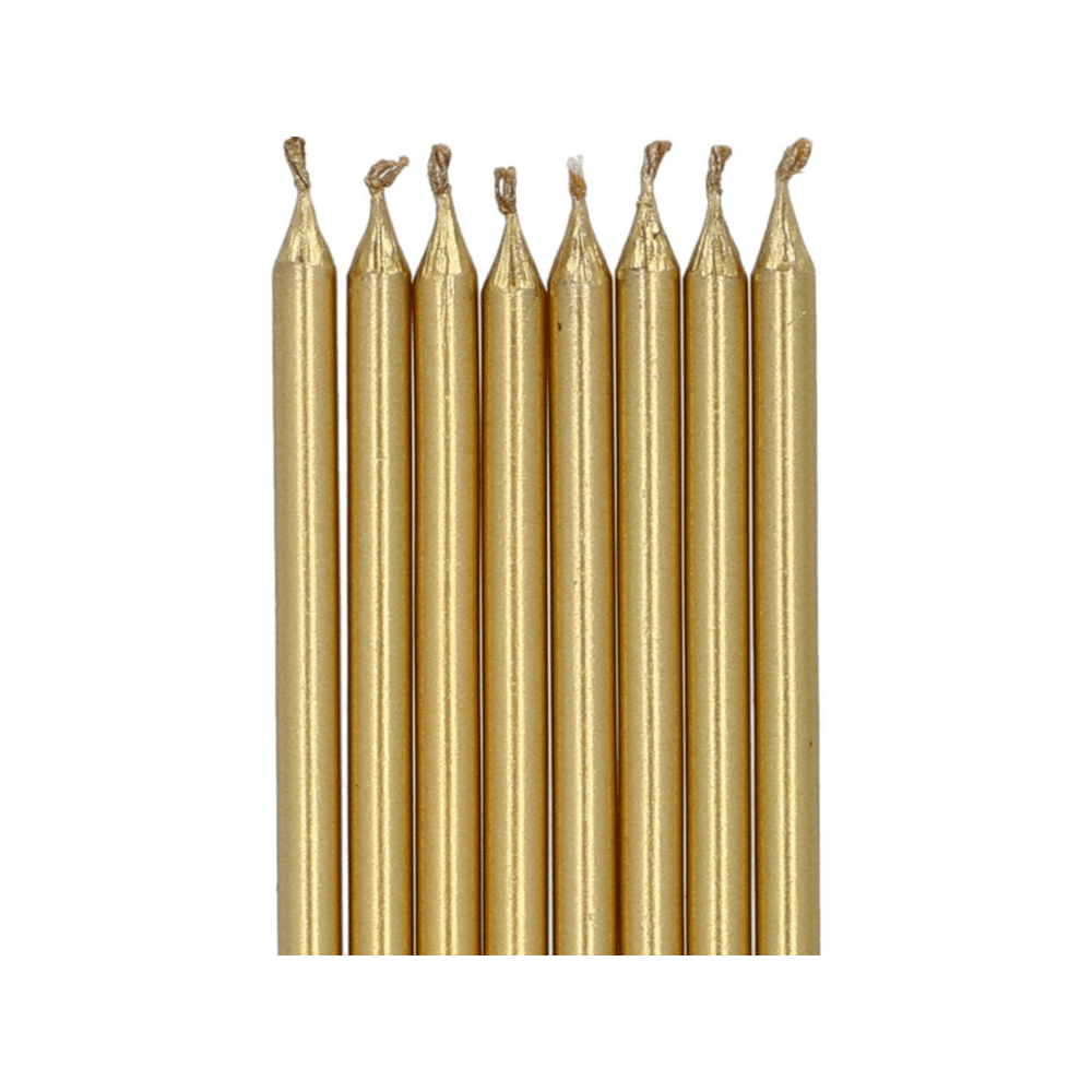 Deze set van 8 gouden taartkaarsjes geeft elke taart een feestelijke uitstraling. Ideaal voor verjaardagen, jubilea of gewoon om een bijzonder moment te vieren. De kaarsjes zijn elegant, gemakkelijk te gebruiken en zorgen meteen voor een vrolijke sfeer.