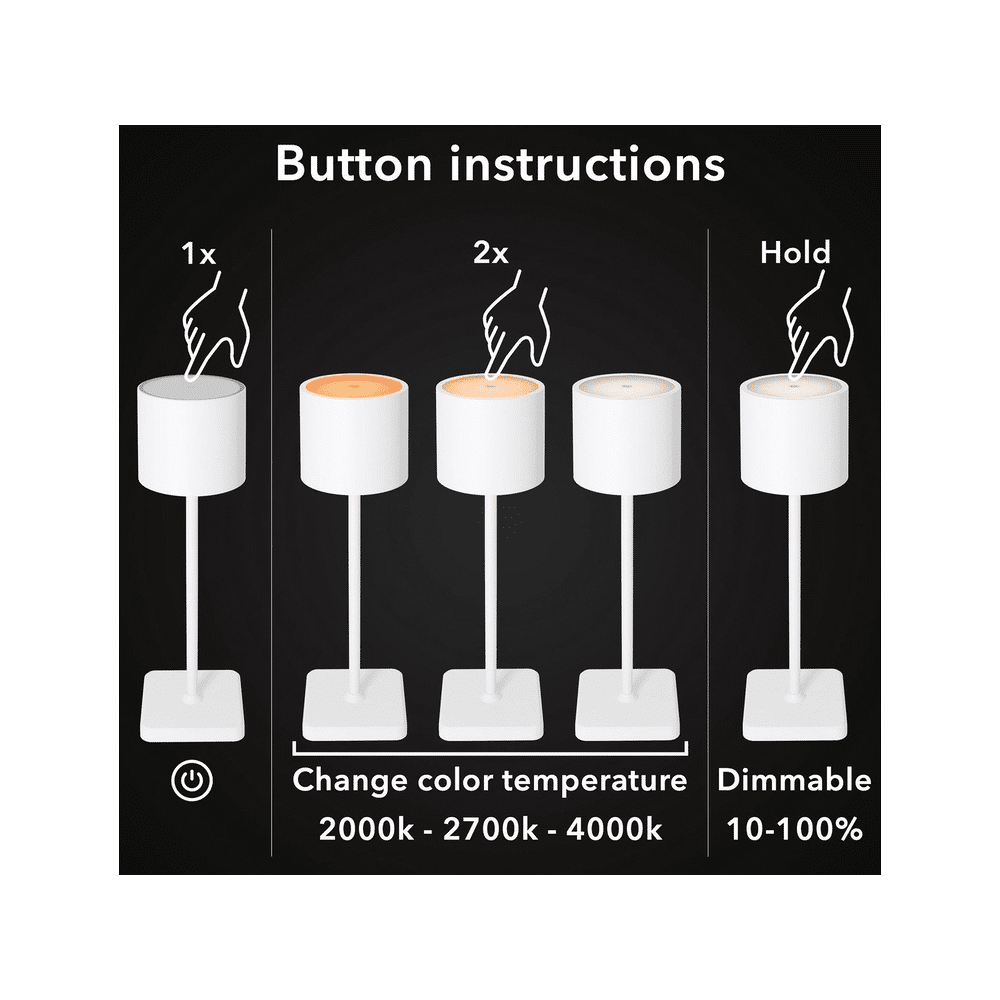 Een simpele aanraking is genoeg om de lamp aan en uit te zetten, de helderheid te dimmen en de lichtkleur aan te passen van warm tot neutraal wit. Geen schakelaars nodig, gewoon tikken en genieten!