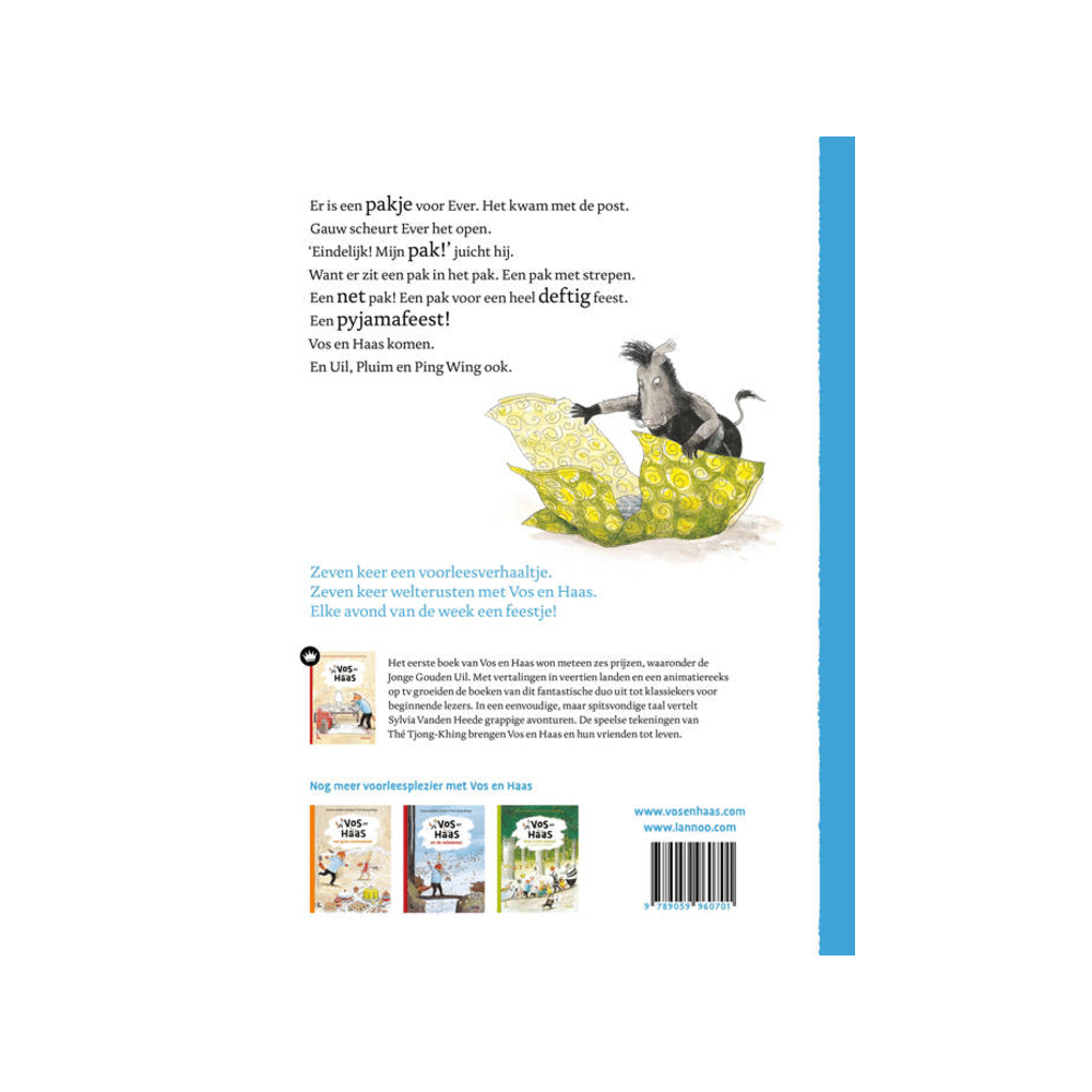 Dat feest blijkt een vrolijk pyjamafeest te zijn met Vos en Haas.