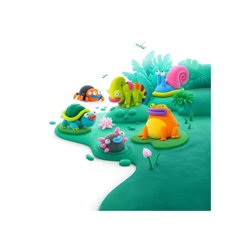 De set bevat 3 potjes air-dry klei, waarmee je eenvoudig een kameleon en andere kleine figuurtjes kunt boetseren. De klei hardt vanzelf uit aan de lucht, dus geen oven nodig. Alles wat je nodig hebt voor een leuke creatieve activiteit!Hoe gebruik je de klei?