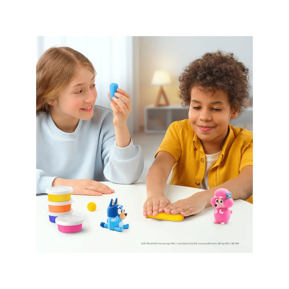 Met deze Hey Clay Set maak je kleurrijke Bluey figuurtjes! De set bevat 5 potjes air-dry boetseerklei in vrolijke kleuren, speciaal voor fans van de populaire serie. Perfect voor kinderen én volwassenen die graag creatief bezig zijn.Wat zit er in deze speciale clay set?