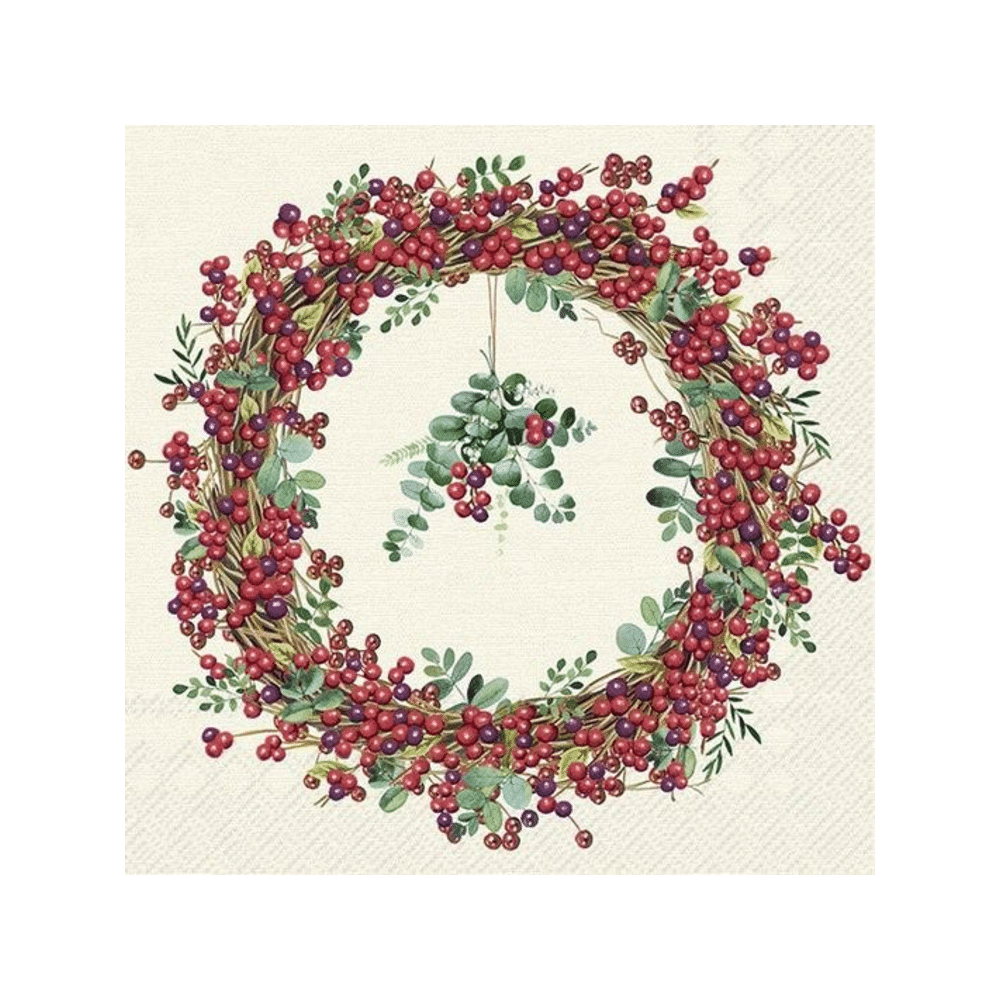 - Product: Ihr 10134 Berry Wreath Lunchservet Cream
