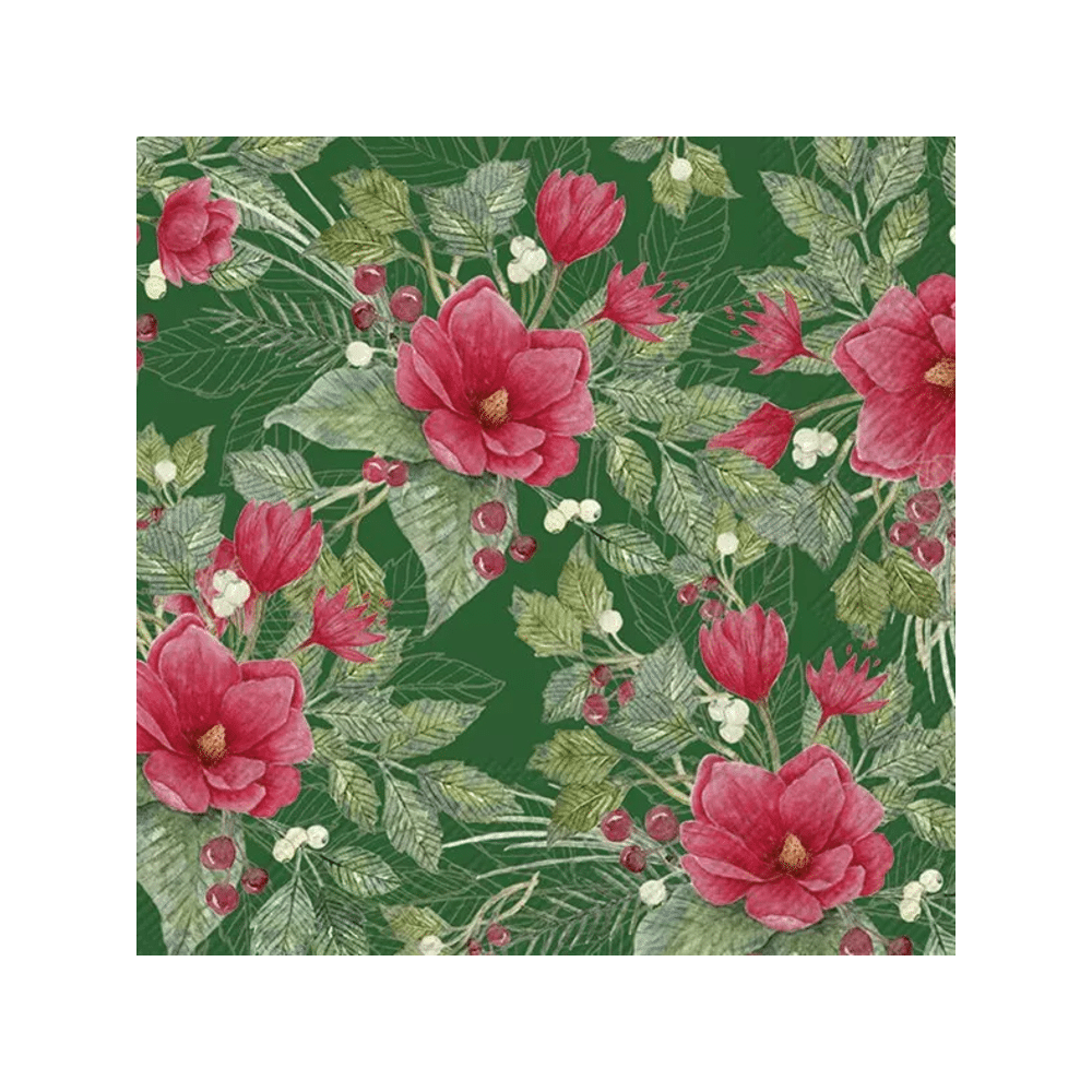 Ihr 10598 Christmas Flowers Lunchservet Green