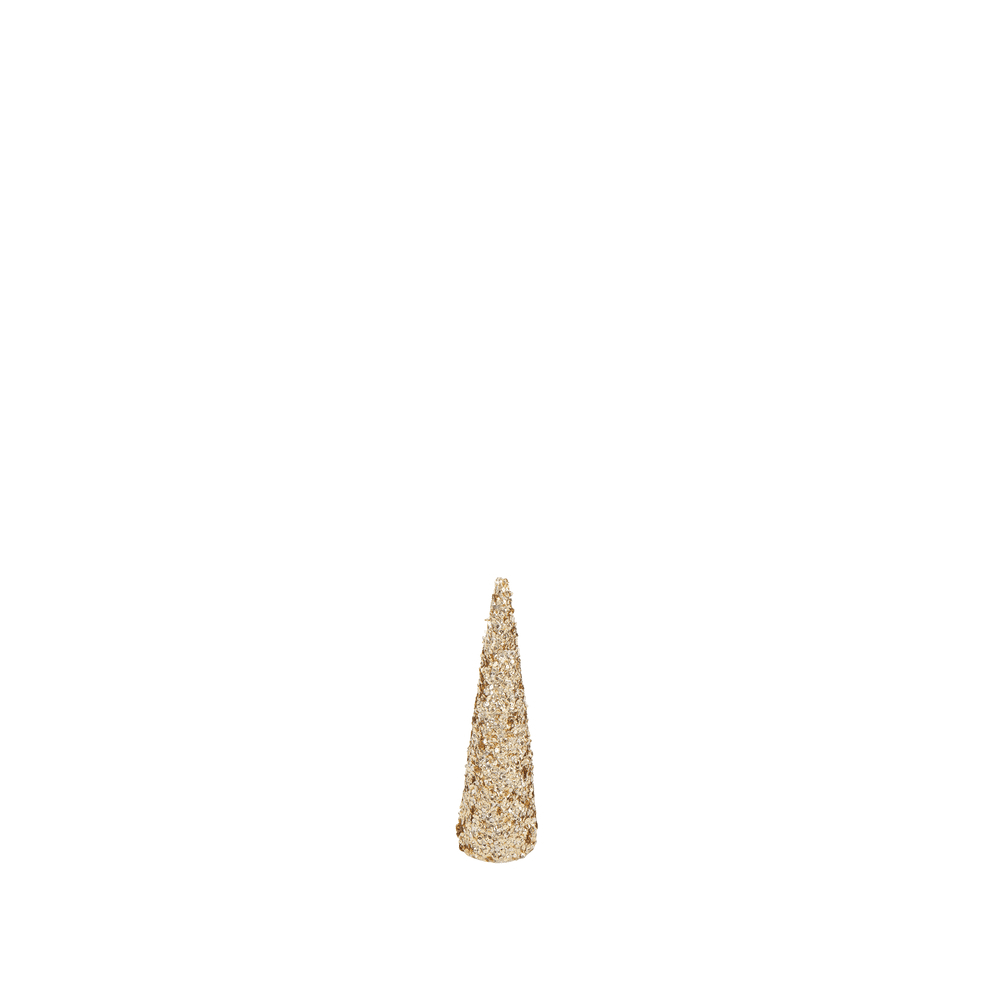 Laat jouw kerstdecoratie schitteren als nooit tevoren met deze prachtige gouden kegel met pailletten. Deze kegelvormige decoratie is helemaal klaar om jouw interieur een glamoureuze touch te geven dankzij de fonkelende pailletten die het licht prachtig weerkaatsen. Perfect om een feestelijke sfeer te creëren, zowel in de woonkamer, op een bijzettafel als op je kersttafel.