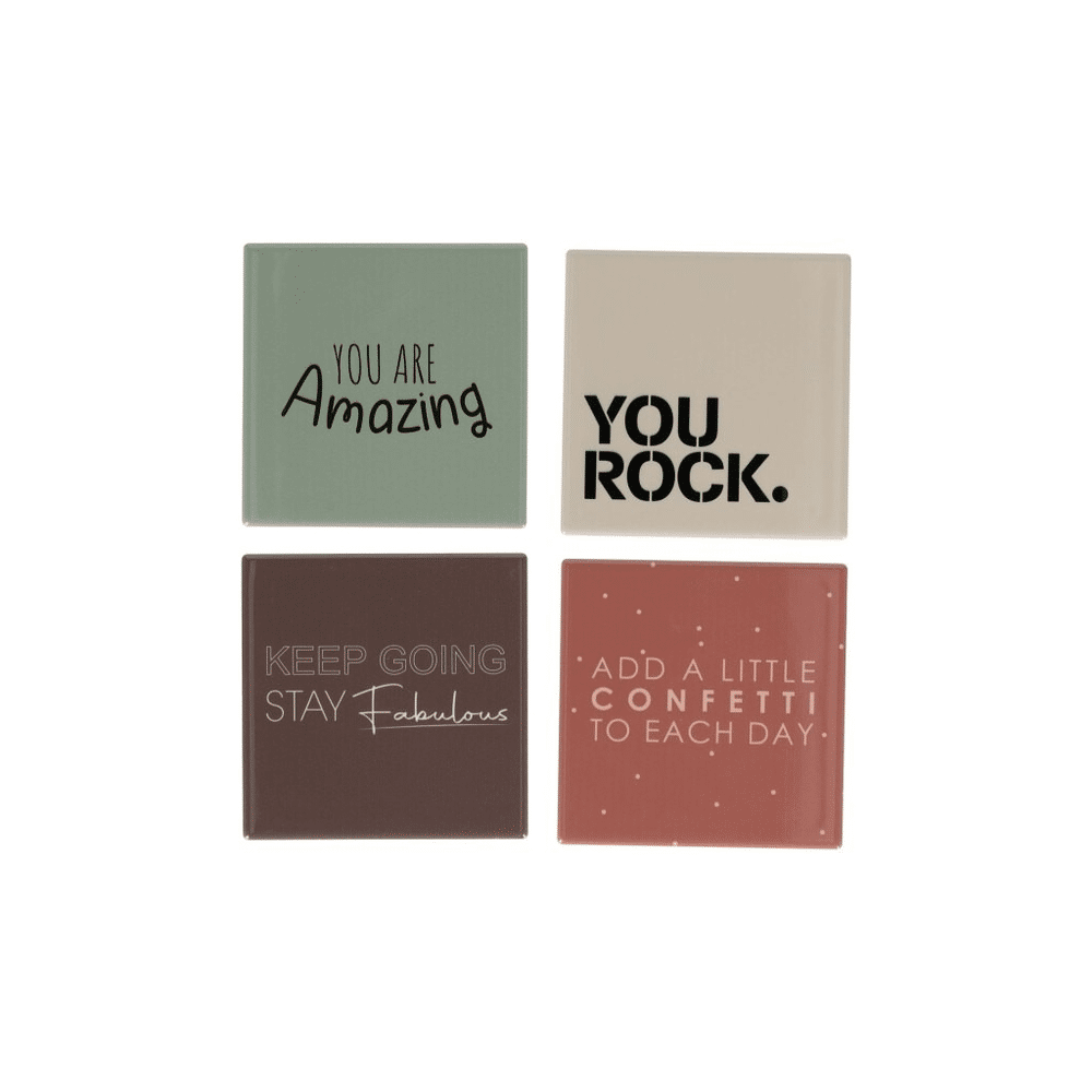 Elke tegel bevat een unieke boodschap om een positieve sfeer in huis te creëren. Dankzij de praktische standaard wissel je eenvoudig de tegels en houd je je interieur fris en inspirerend.