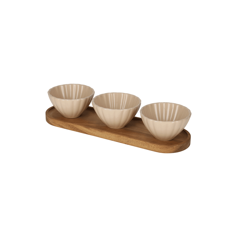 Met de Jens Living Serveerset met schelpvormige schaaltjes in beige serveer jij snacks, dips of tapas op een stijlvolle en originele manier. Jij creëert een feestelijke presentatie voor borrels, diners of een gezellige avond thuis. De neutrale kleur past perfect bij elk servies en interieur.