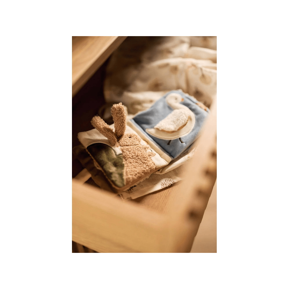 Het boekje stimuleert de zintuigen en helpt bij de ontwikkeling van de fijne motoriek. Dankzij het handige lusje hang je het eenvoudig aan de buggy, autostoel of box. En met de lieve Tiny Park-print past het perfect bij de rest van de collectie.- Zacht babyboekje met verschillende structuren en geluidjes